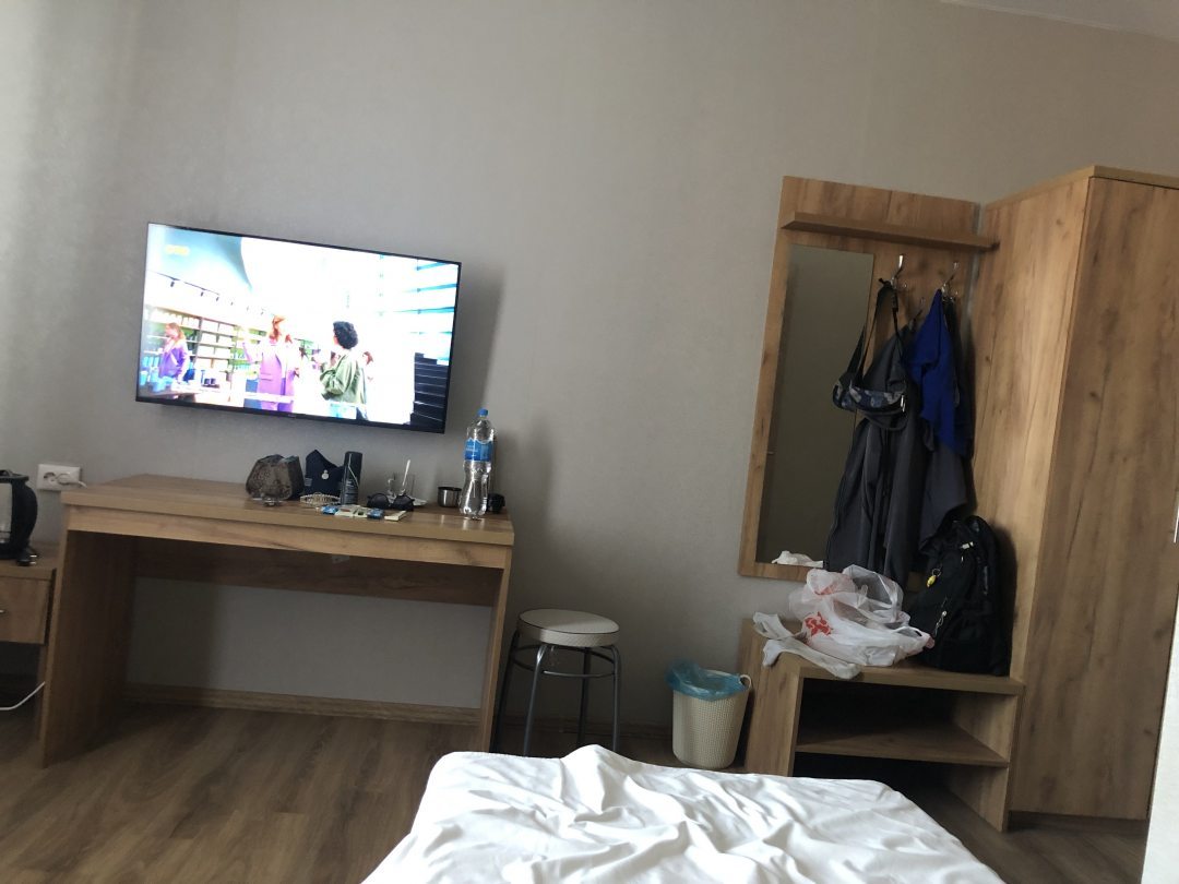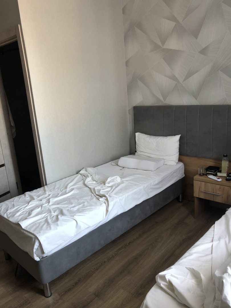 Очень комфортный номер для двоих, с двумя отдельными просторными кроватями, что не мало важно! До всех необходимых мест недалеко, рядом есть магазины, рынок, кафе. В самом отеле на 1 этаже также есть сауна и бассейн, но не успели посетить. В целом - уютно, чисто, спокойно
