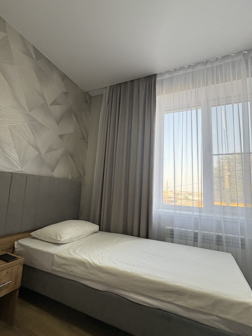 Очень удобное расположение отеля. Мы ехали проездом и нам было важно хорошо выспаться, близко от основной магистральной трассы. Приятно удивило соотношение цены и качества. Есть все необходимое для комфортного сна. Белоснежное белье, чайник в номере, полотенца, одноразовые пеномоющие срадства. Быстрое оформление. На этаже в холле есть холодильник, микроволновая печь, гладильная доска, кулер с водой. Поставили себе в заметки на будущее, если будем еще останавливаться в Элисте.