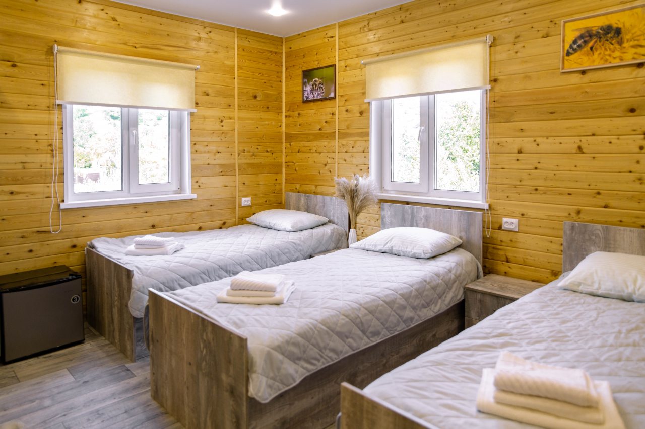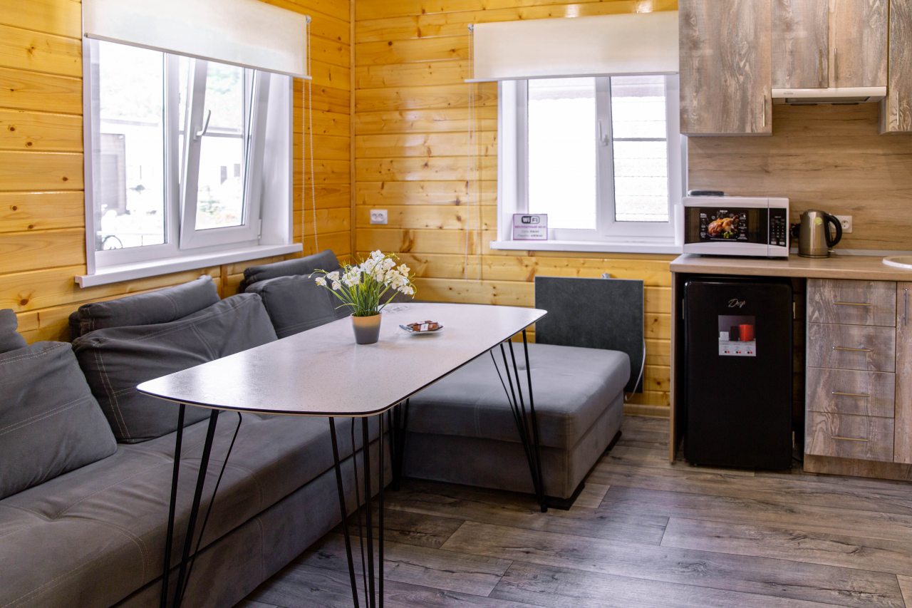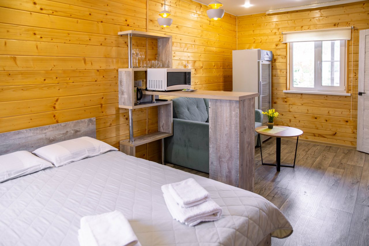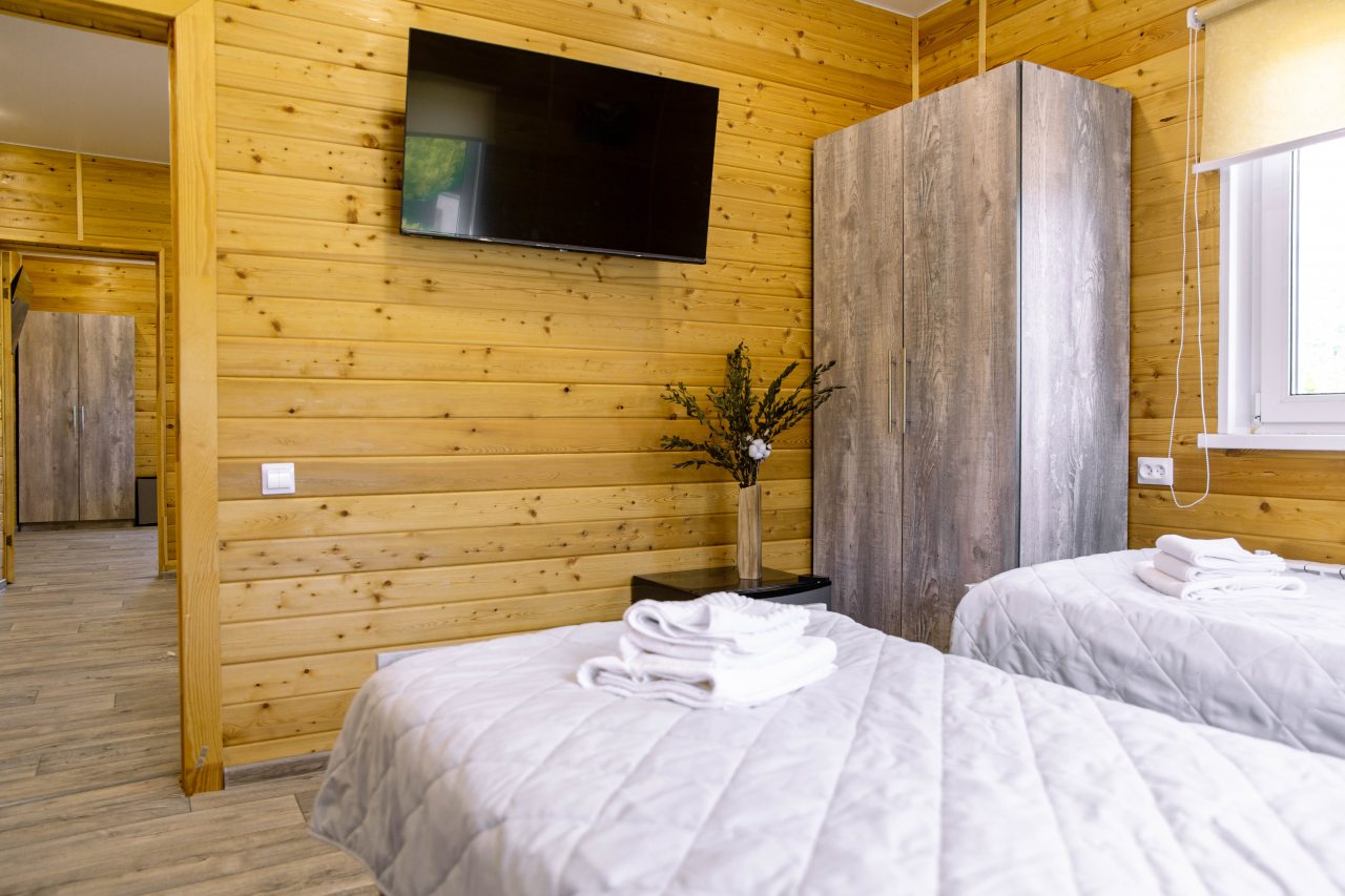 Гости могут расположиться в уютных коттеджах разной вместимости, которые оснащены всеми удобствами: отопление, электричество, ванные комнаты с душем и гигиеническими средствами, удобная мебель, телевизор, Wi-Fi. Имеется терраса с собственной зоной отдыха.