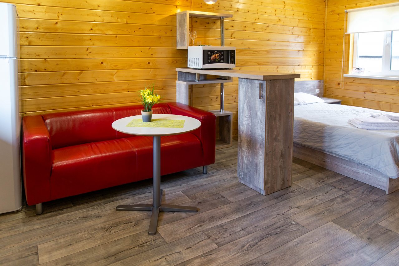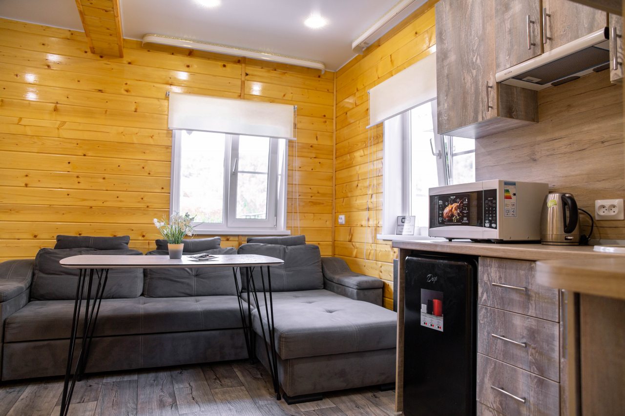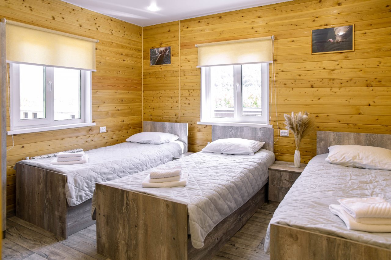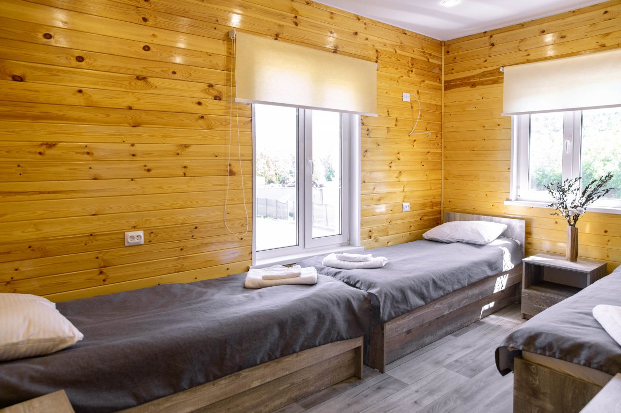 Гости могут расположиться в уютных коттеджах разной вместимости, которые оснащены всеми удобствами: отопление, электричество, ванные комнаты с душем и гигиеническими средствами, удобная мебель, телевизор, Wi-Fi. Имеется терраса с собственной зоной отдыха.