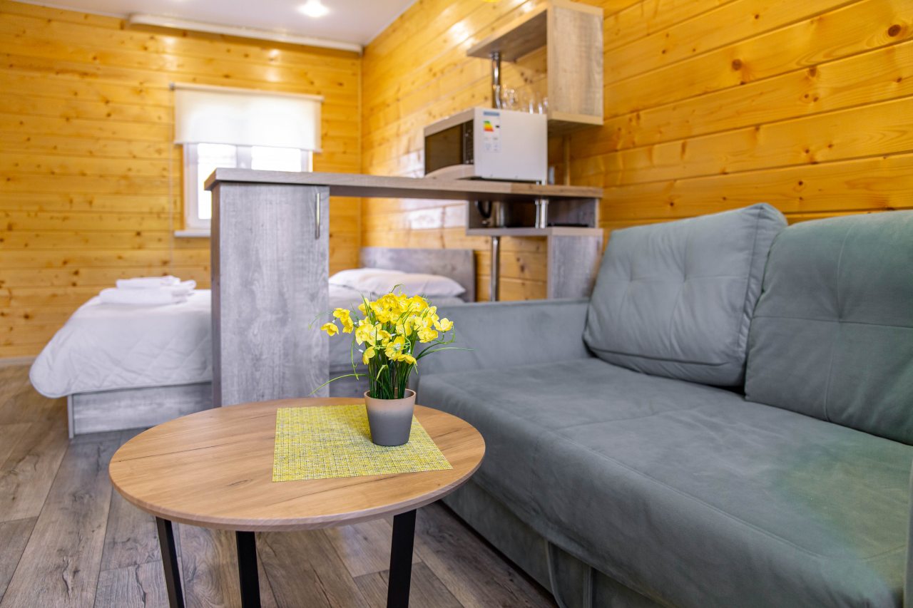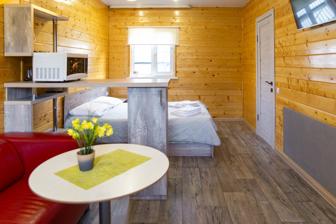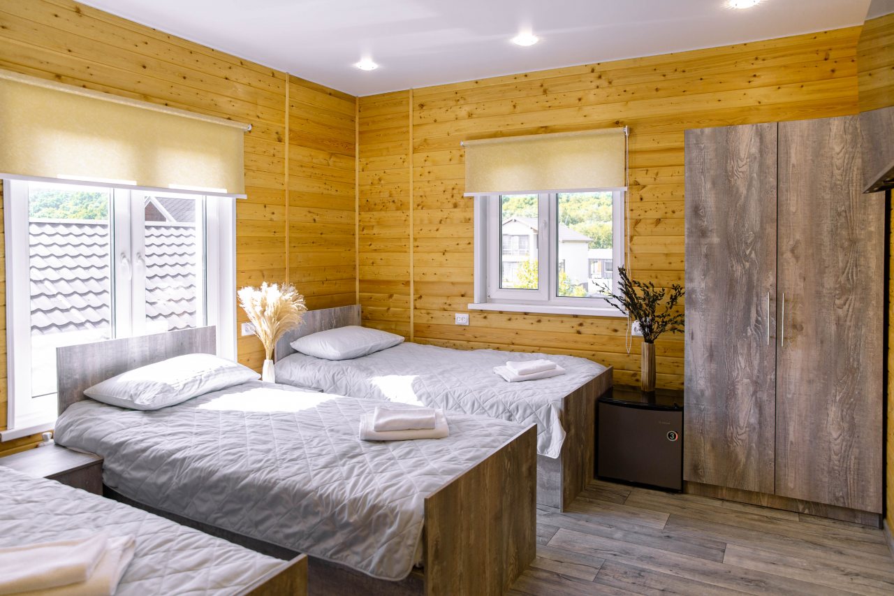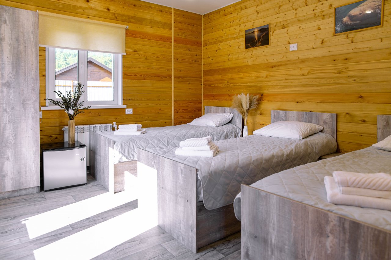 Гости могут расположиться в уютных коттеджах разной вместимости, которые оснащены всеми удобствами: отопление, электричество, ванные комнаты с душем и гигиеническими средствами, удобная мебель, телевизор, Wi-Fi. Имеется терраса с собственной зоной отдыха.