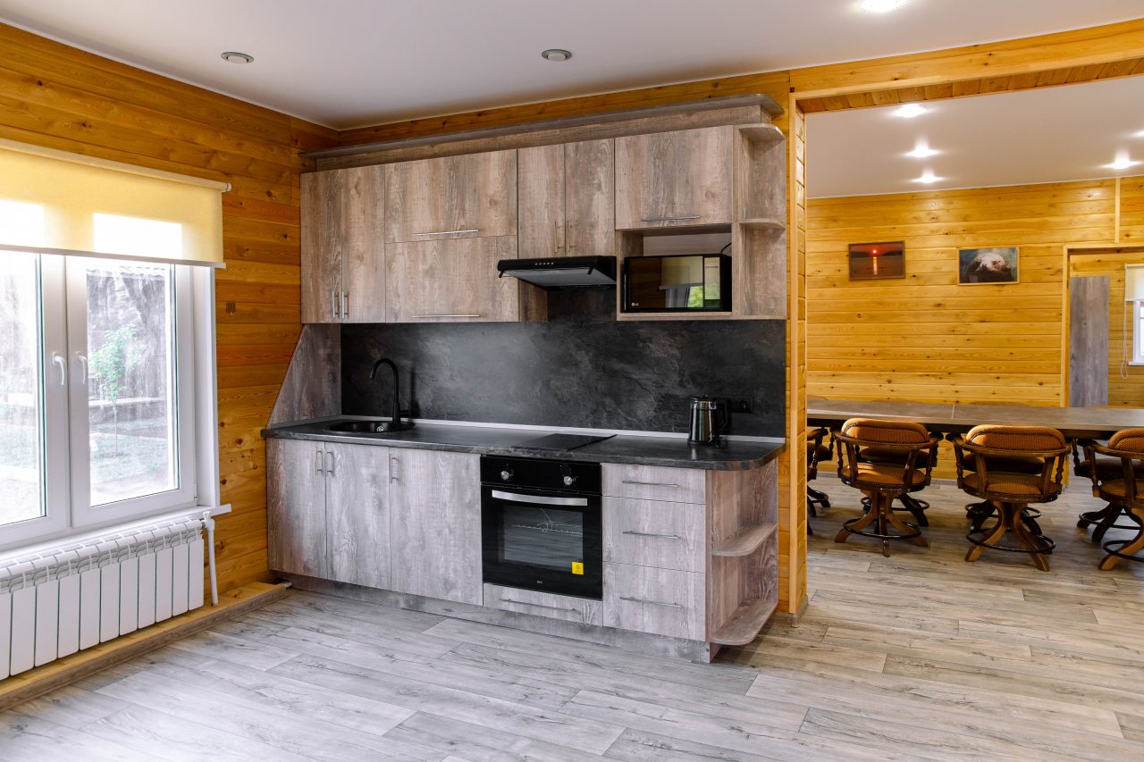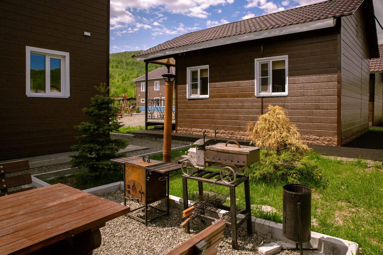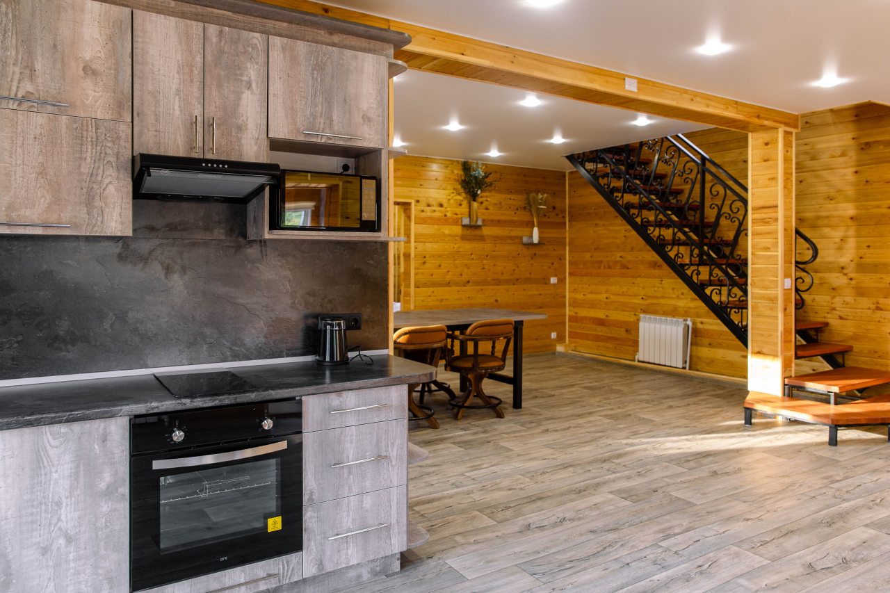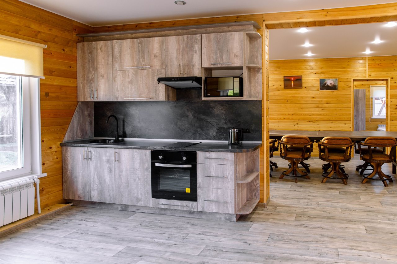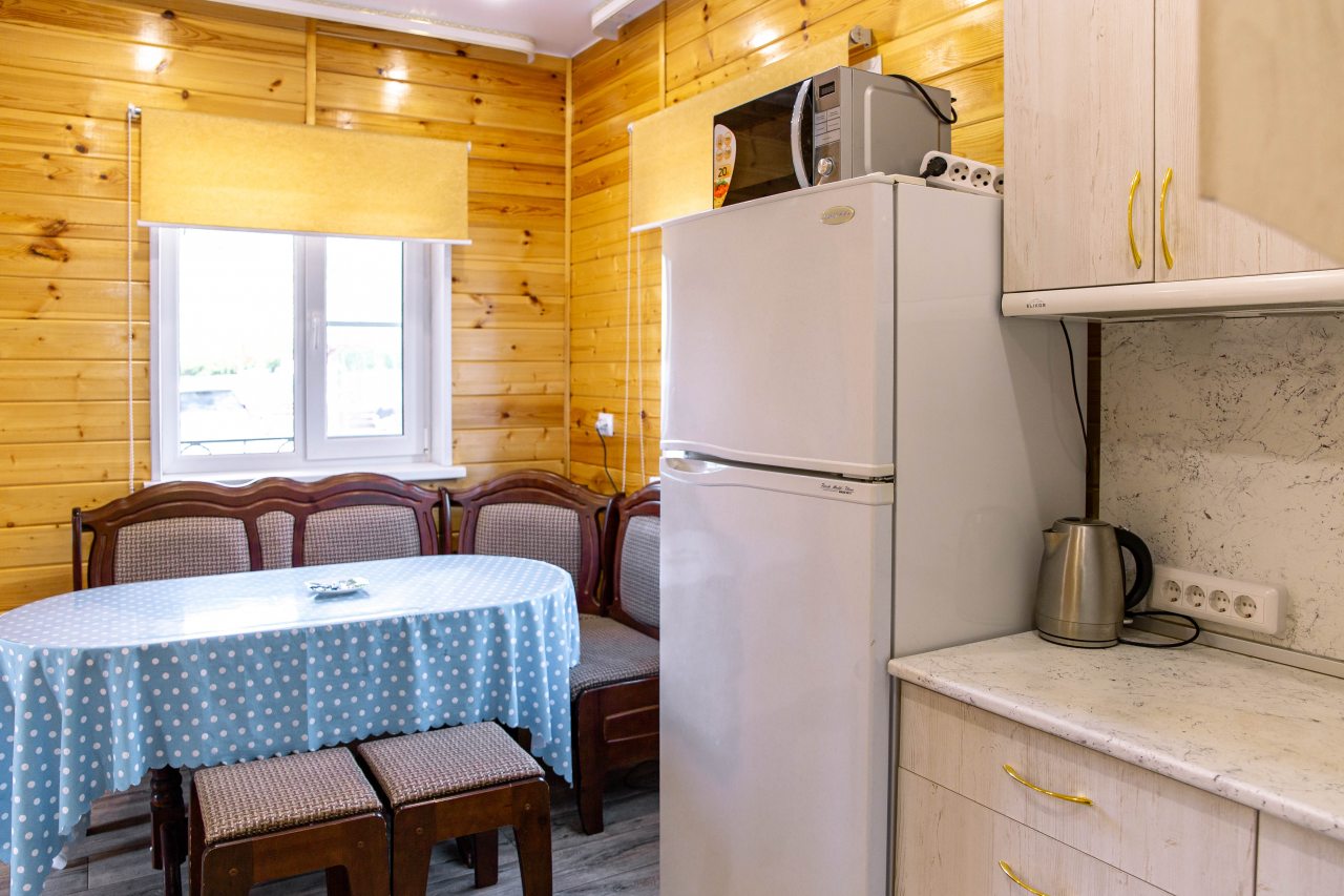 В каждом варианте есть кухня с бытовой техникой и посудой, также можно воспользоваться мангалом.