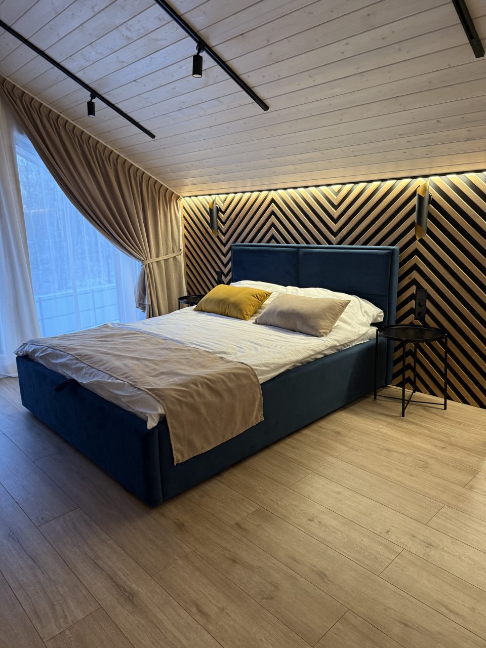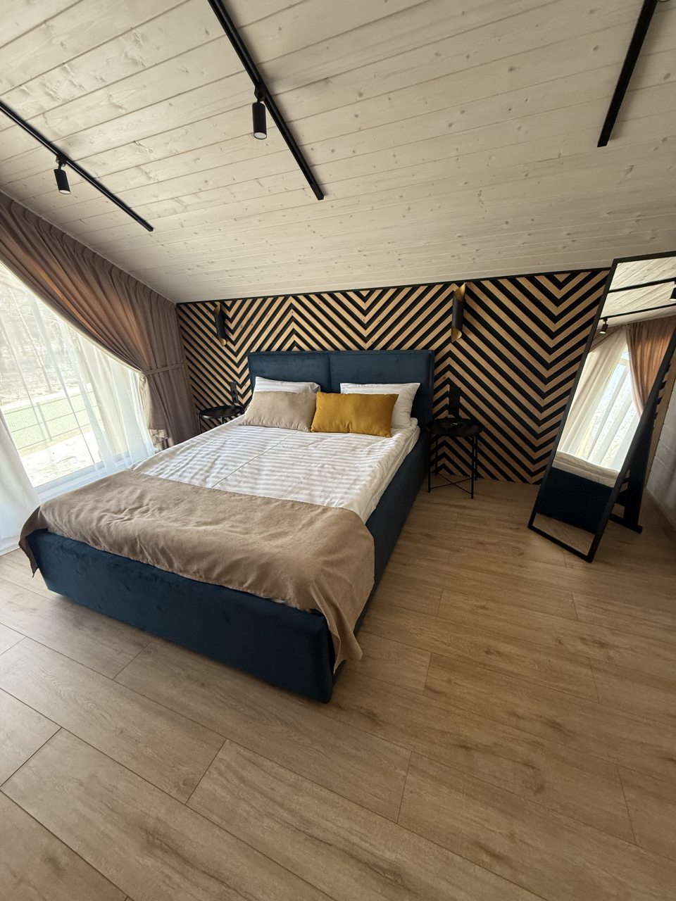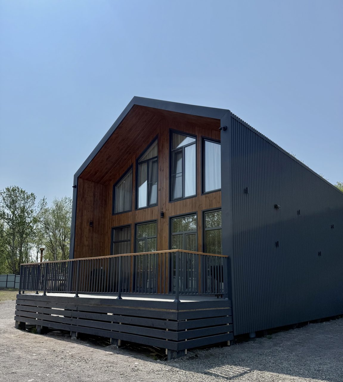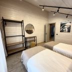 Проживать предлагается в доме с дизайнерским ремонтом, с панорамными окнами. С комфортом могут проживать до 10 гостей. Предоставляются: комфортабельные спальные места, индивидуальные шкафчики, наборы полотенец и постельного белья. Есть ванная комната. Телевизор и бесплатный Wi-Fi скрасят вечера, проведенные в доме.