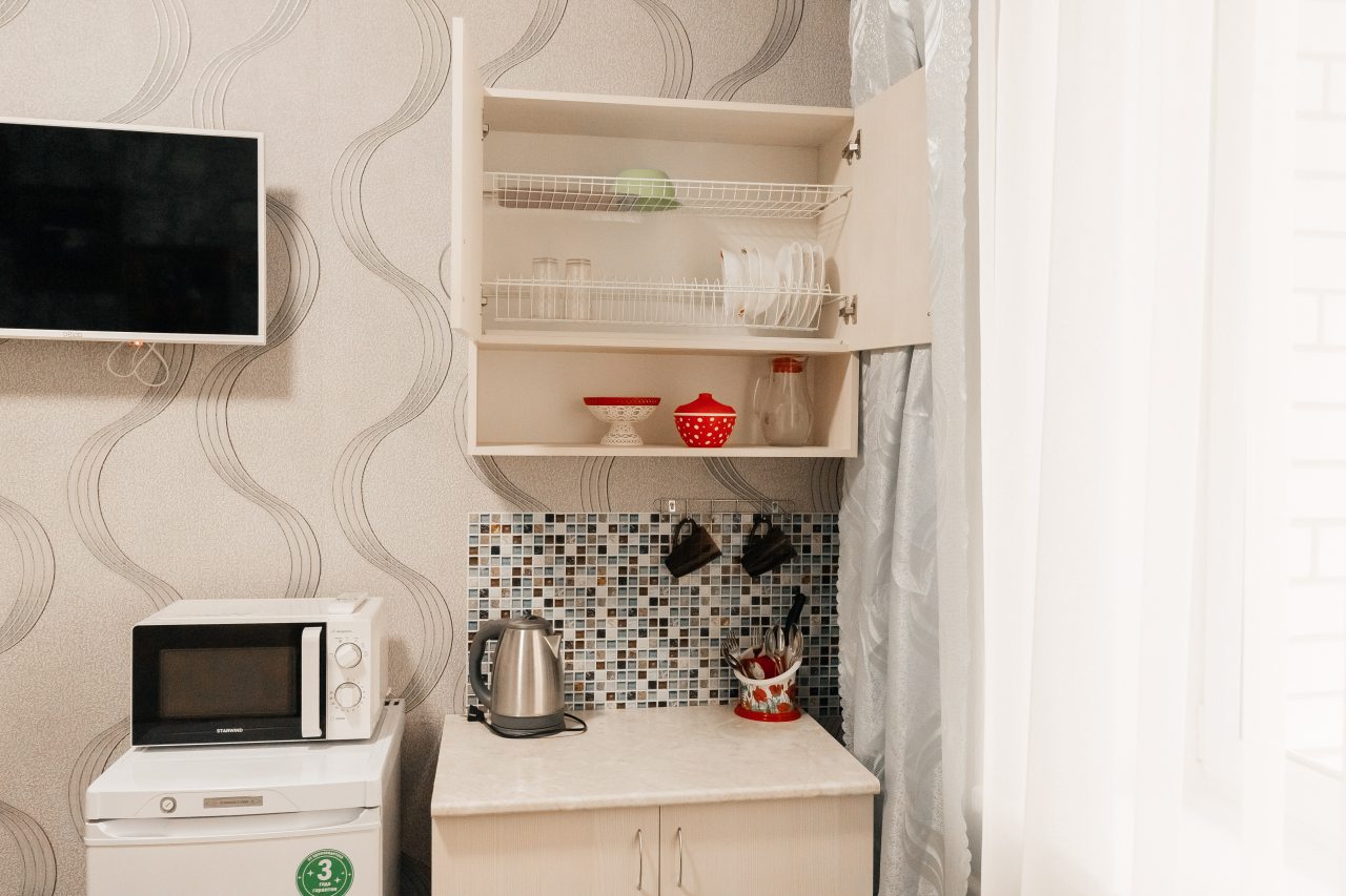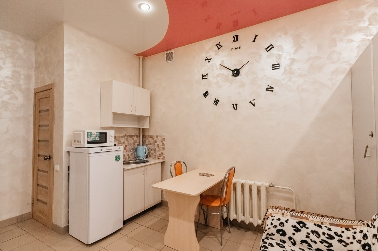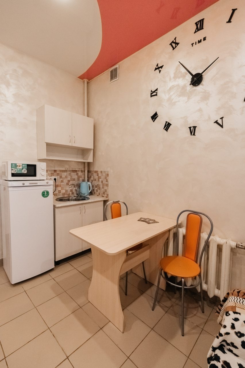 В общей кухне можно разогреть или приготовить еду, в некоторых номерах она отдельная. Предоставлен чайник, микроволновая печь, плита, холодильник, кулер. Рядом есть супермаркеты.