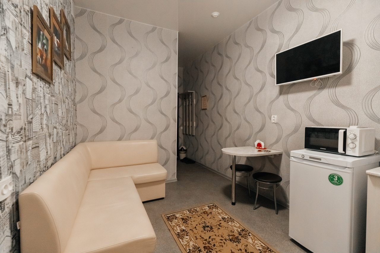В Энгельсе находился по рабочим делам и на 2 дня бронировал номер в этом отеле. Спальных мест здесь гораздо больше, но других вариантов свободных не было. Документы для отчетности предоставили. Мне одному конечно жить в таком просторном номере было удобно. Небольшая кухонная зона здесь предусмотрена. Есть холодильник, микроволновка и чайник. Свободное время провел с комфортом.