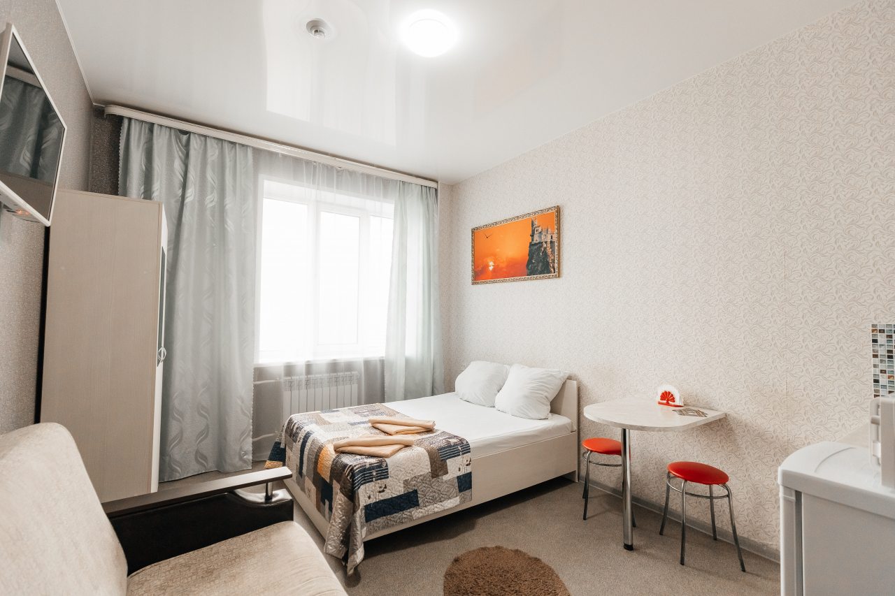 Остановились в отеле на 3 дня, в течение которых посетители своих друзей и конечно же достопримечательности города Энгельс. Заселиться в данный отель можно в любое время суток, и это для нас уже было плюсом. На территории работает wi-fi, мобильный интернет почти не подключали. Рядом много магазинов, есть прогулочные зоны. В номере стандартная кровать, есть еще диван, телевизор, небольшая зона кухни и шкафы. Сервис качественный. Подтверждаю!