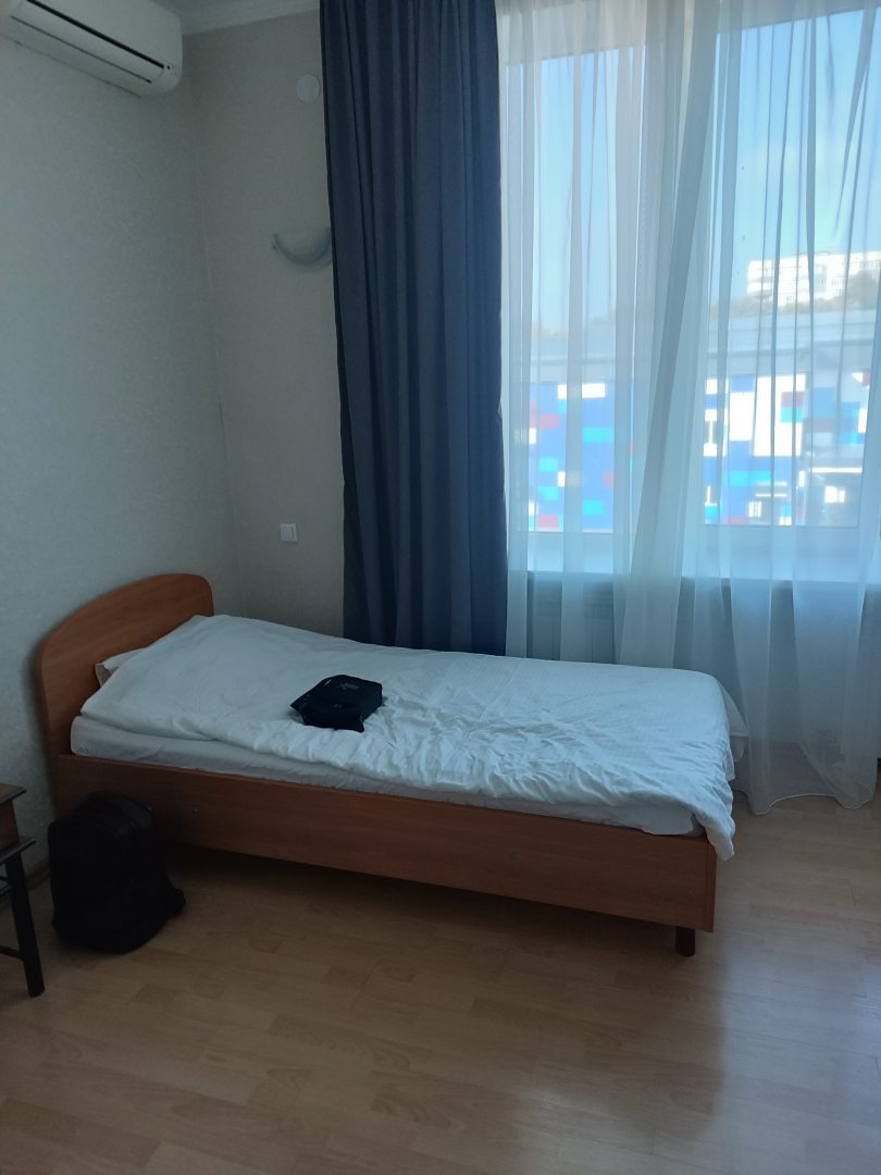 Находится в отличном месте. Центр неподалеку, на общественном транспорте можно доехать. Рядом объекты инфраструктуры, магазины, аптека, точки общепита. Комната мне понравилась. Большая, шкаф для вещей просторный, с плечиками, все, как я люблю. Рекомендую.