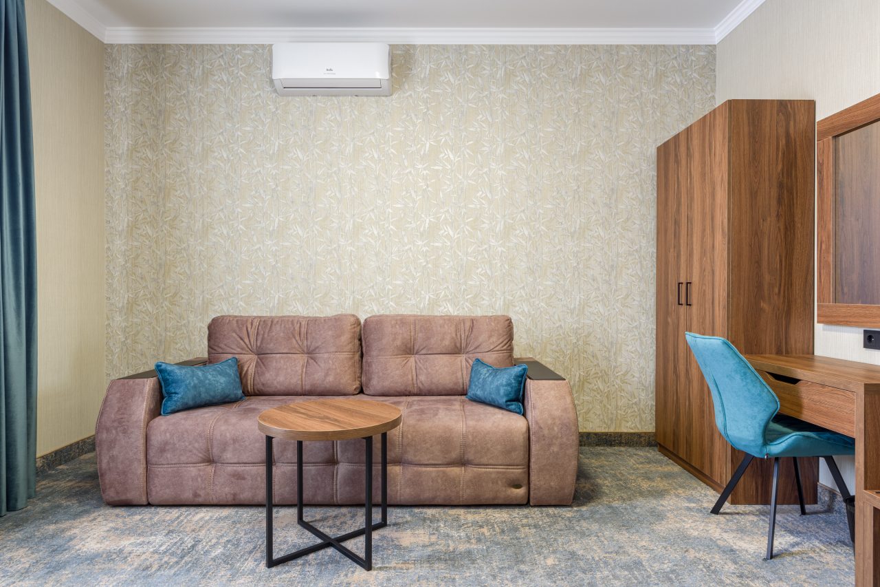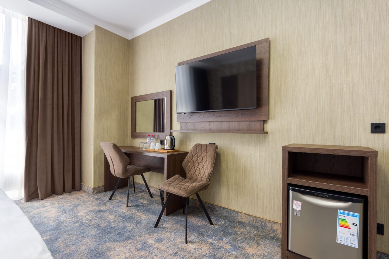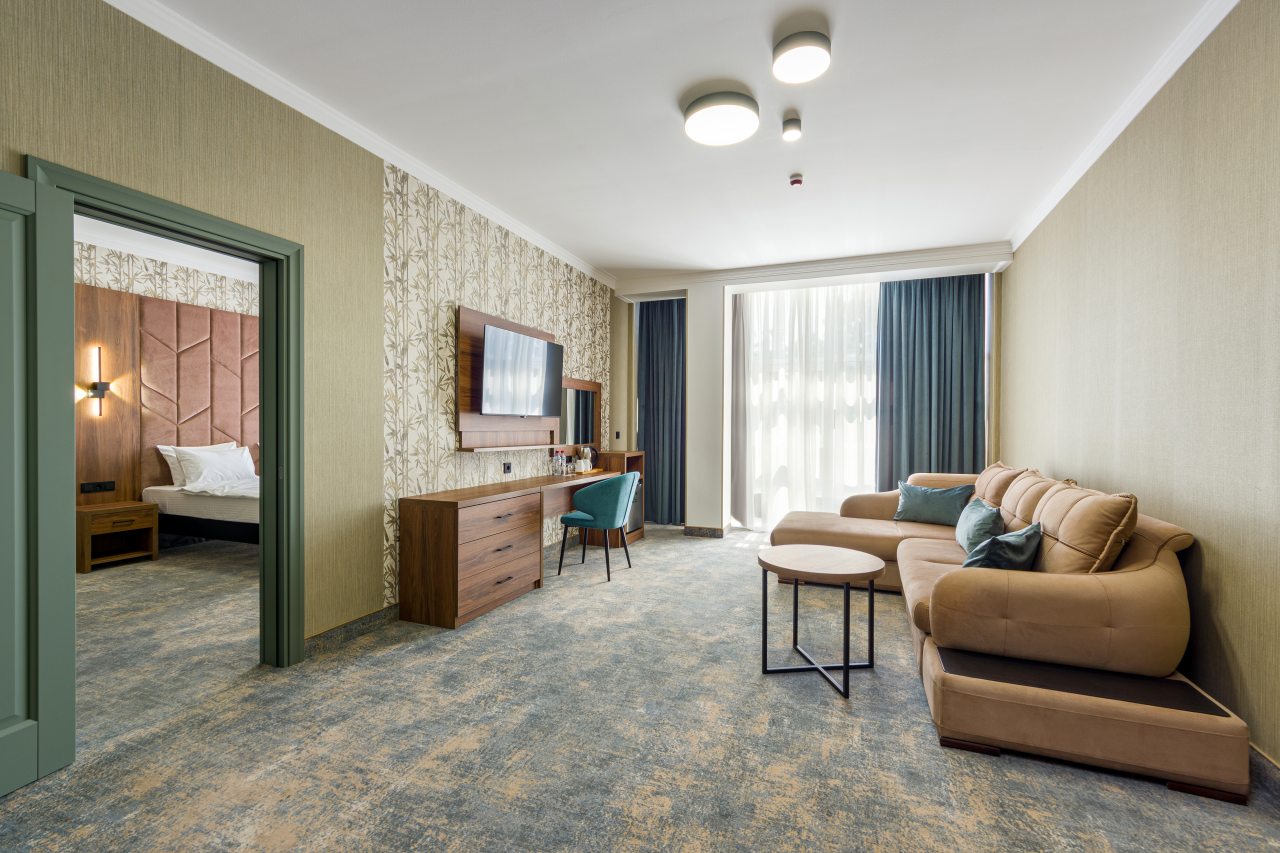 Для размещения гостей предложены категории: «Стандарт», «Люкс», и «Улучшенный». Номера выполнены в роскошном стиле и укомплектованы качественной мебелью, техникой и собственный санузлом с комплектом полотенец.