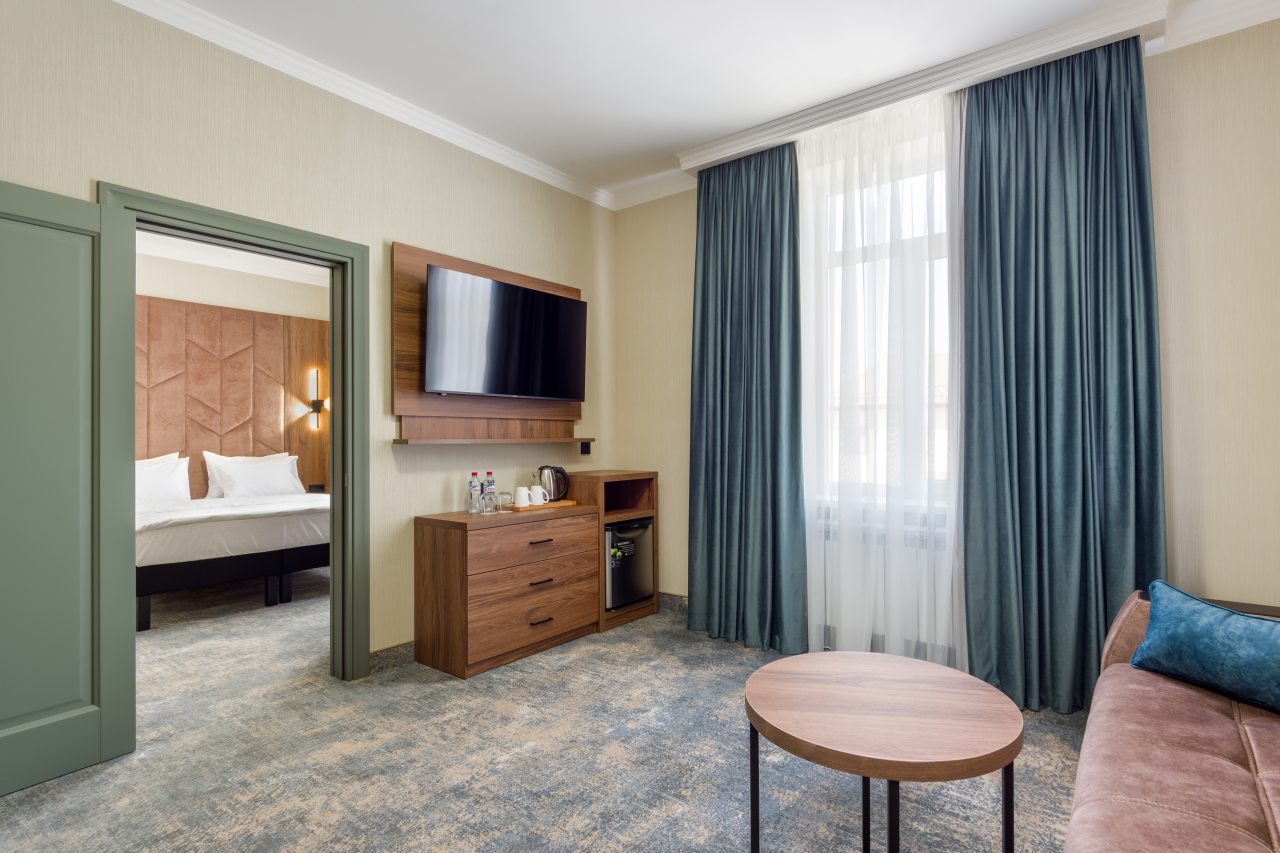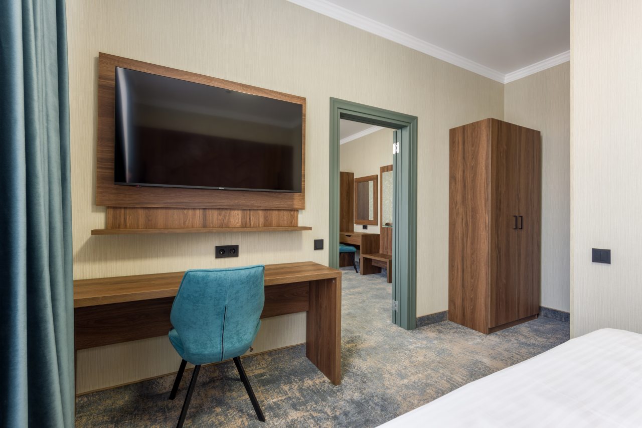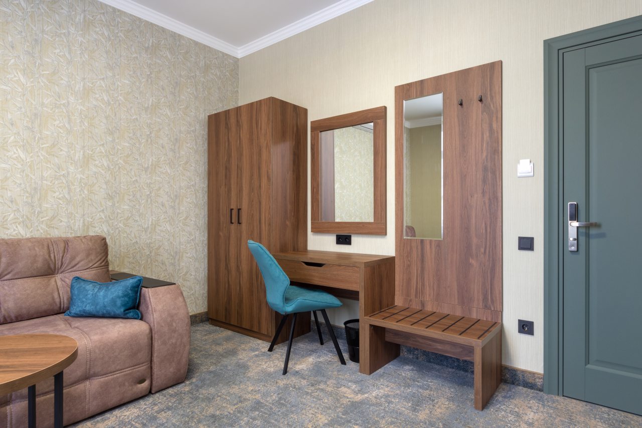 Для размещения гостей предложены категории: «Стандарт», «Люкс», и «Улучшенный». Номера выполнены в роскошном стиле и укомплектованы качественной мебелью, техникой и собственный санузлом с комплектом полотенец.