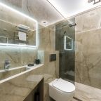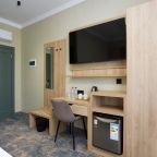 Организовать перекус или чаепитие можно благодаря бытовым приборам: чайная станция и небольшой холодильник. В пешей доступности работают кафе и ресторан, где можно вкусно пообедать.