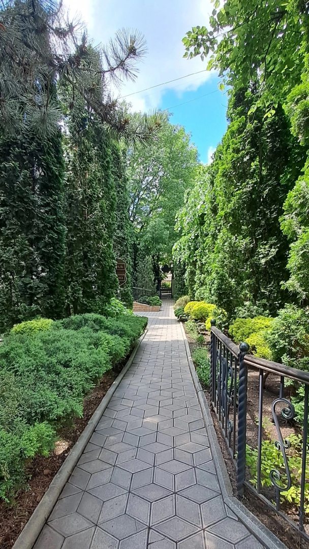 Очень приятный уютный небольшой отель. Весь в зелени, в жару будет комфортно посидеть на качелях и лавочках. Находится прямо в центре, в 5 минутах от центральной питьевой. Рядом парк, магазинчики, рынок. Очень приветливый персонал, всё расскажут куда сходить. В номере всё есть, чисто и уютно.