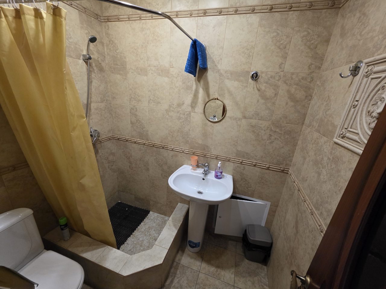 В номере полулюкс мы разместились с комфортом. Оформили нас быстро, разумеется, мы бронировали заранее. Расположение отеля удобное, в самом центре Ессентуков. Рядом есть кафе или столовые, с питанием разобрались быстро. В самом номере есть холодильник и чайник. Душ с туалетом свои.