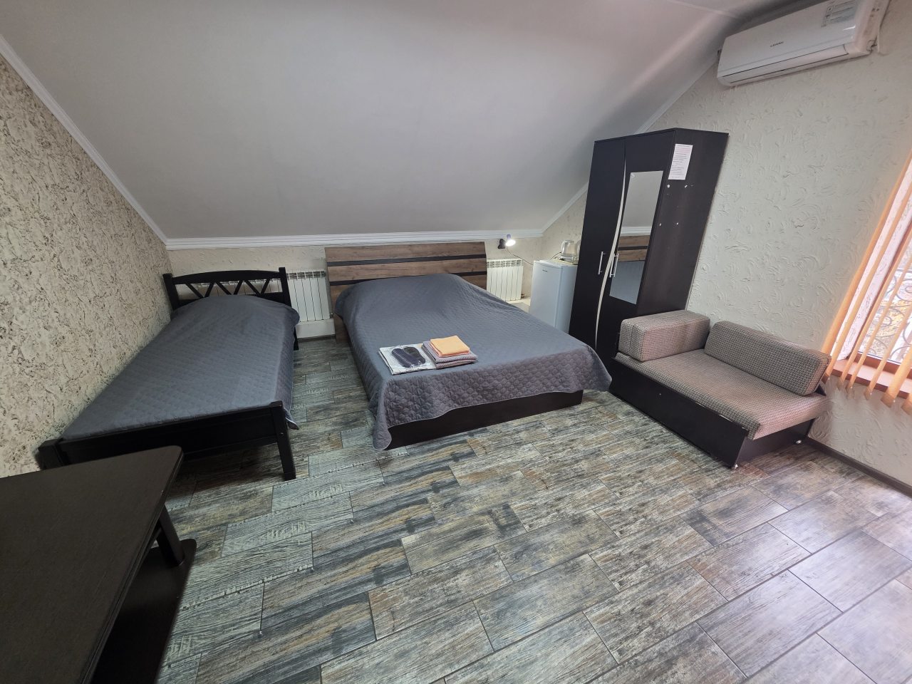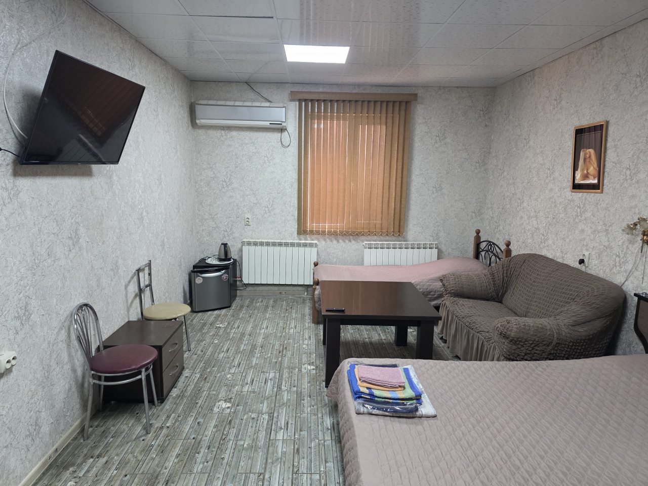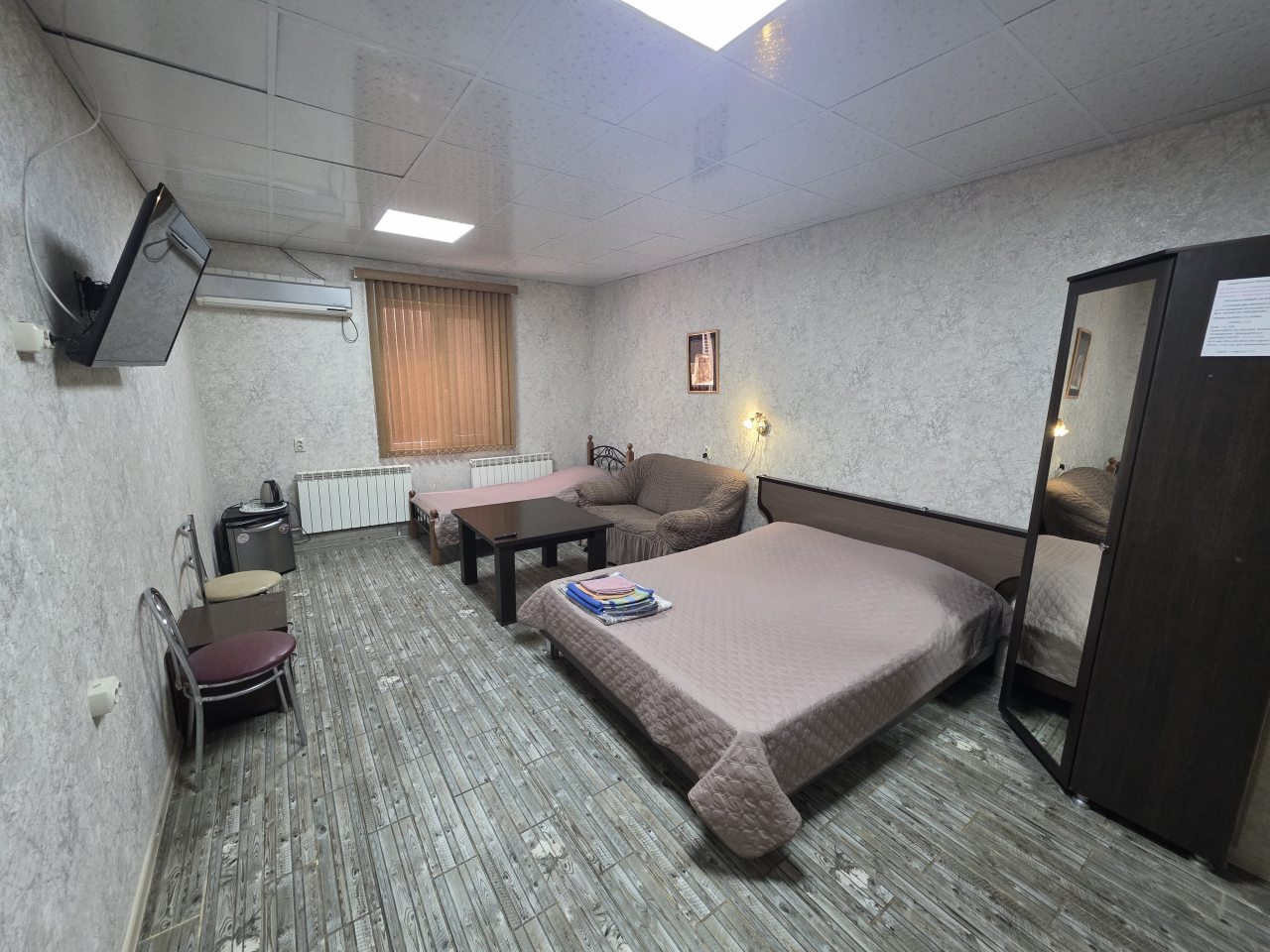 По своему расположению гостиница очень удобная, так как совсем недалеко от вокзала. Плюс мне понравилась ценовая категория, тут недорого, но номер отличный – у меня была комната с парочкой удобных кроватей, диваном. Работал без сбоев кондиционер, телевизор. Также у нас были удобства, с качественной сантехникой.