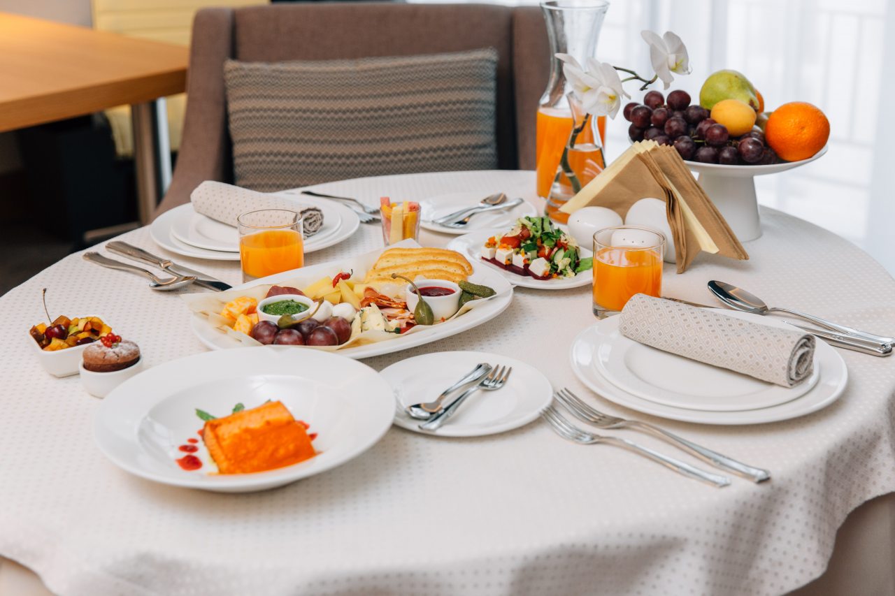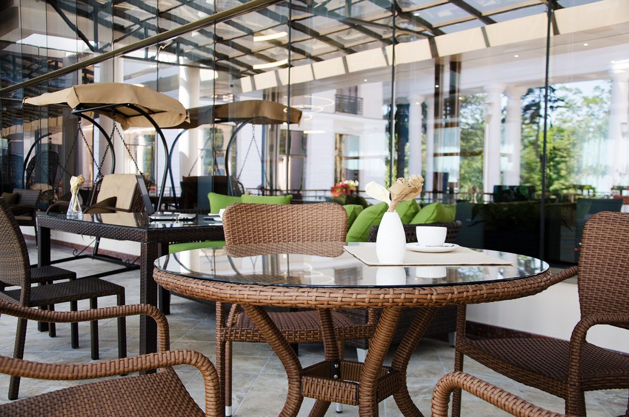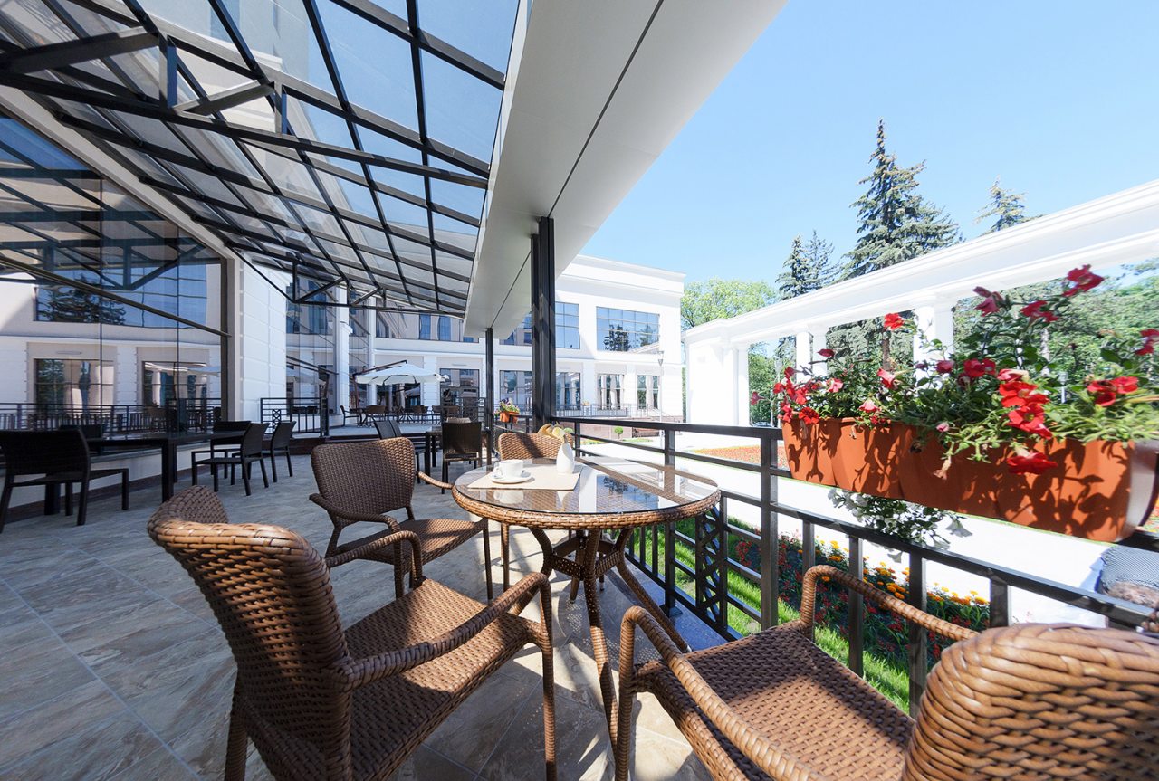 В ресторане санатория действует система питания «шведский стол», а также на территории работает лобби бар «Оникс». Есть возможность заказать блюда и напитки в номер.