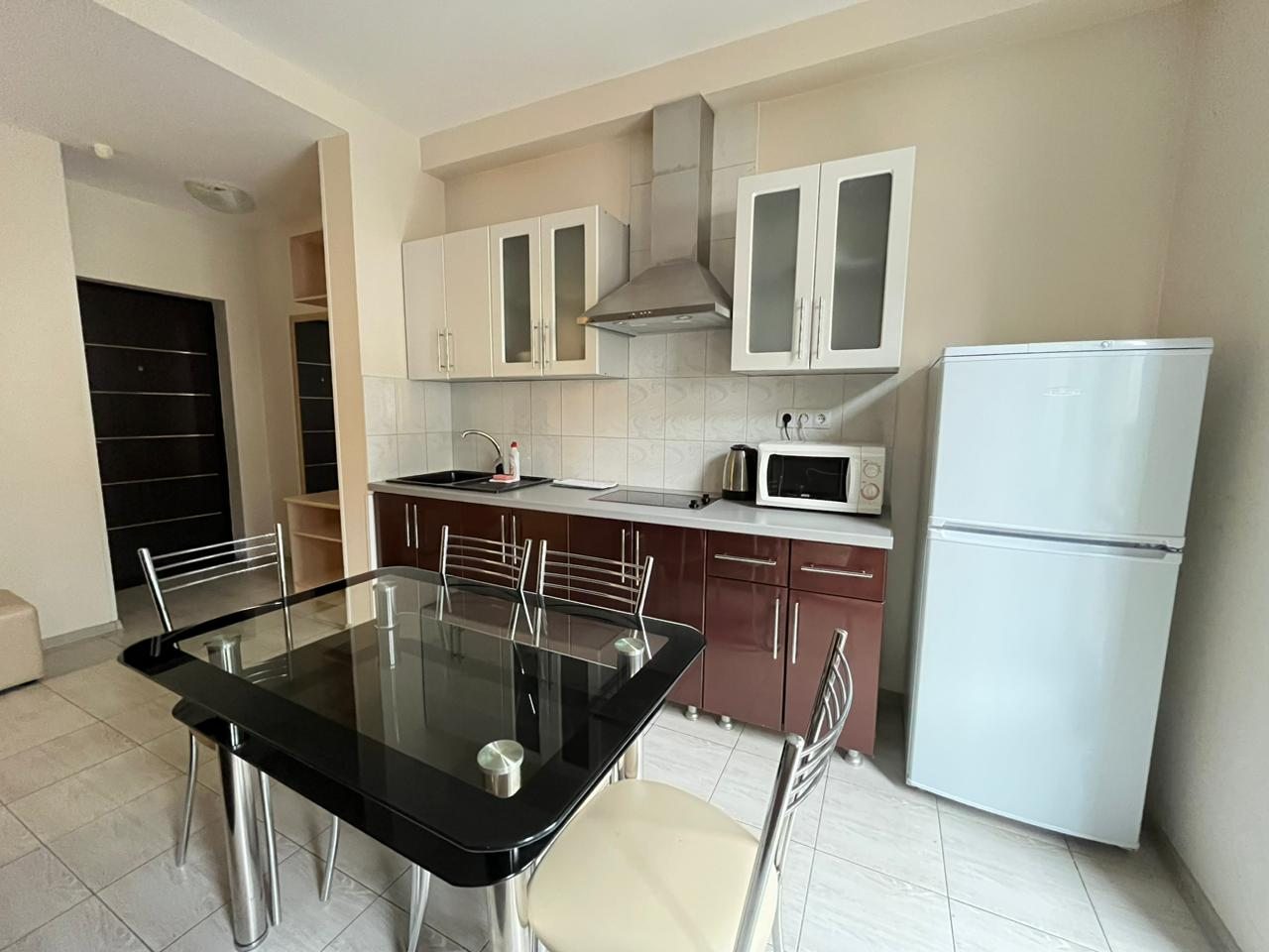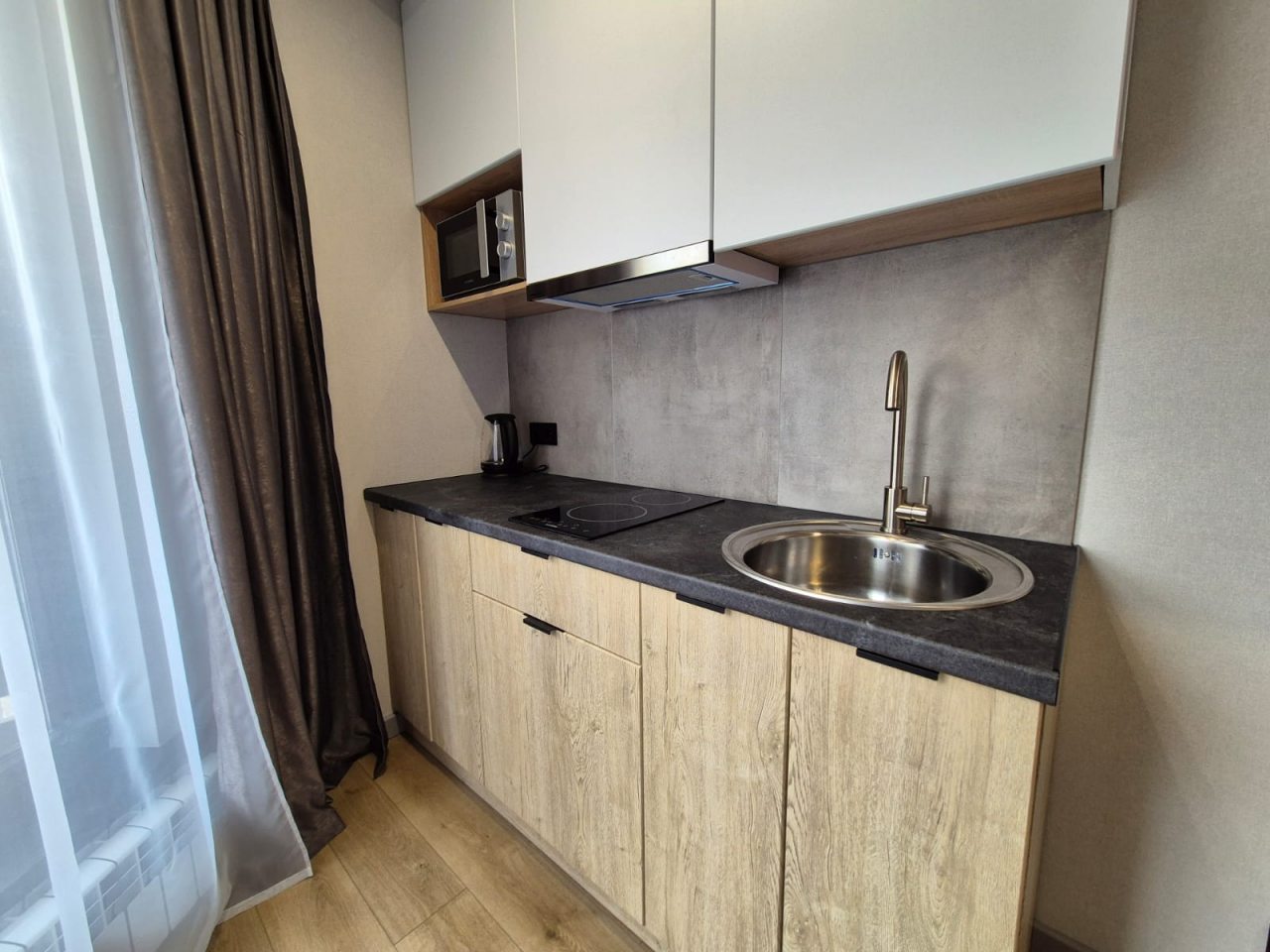 На кухне имеется варочная панель, холодильник и другая бытовая техника, а также обеденный стол, посуда и столовые приборы. В 200 м работает кафе «Lamont», а в 320 м ресторан «Джорджо Сулугуни».
