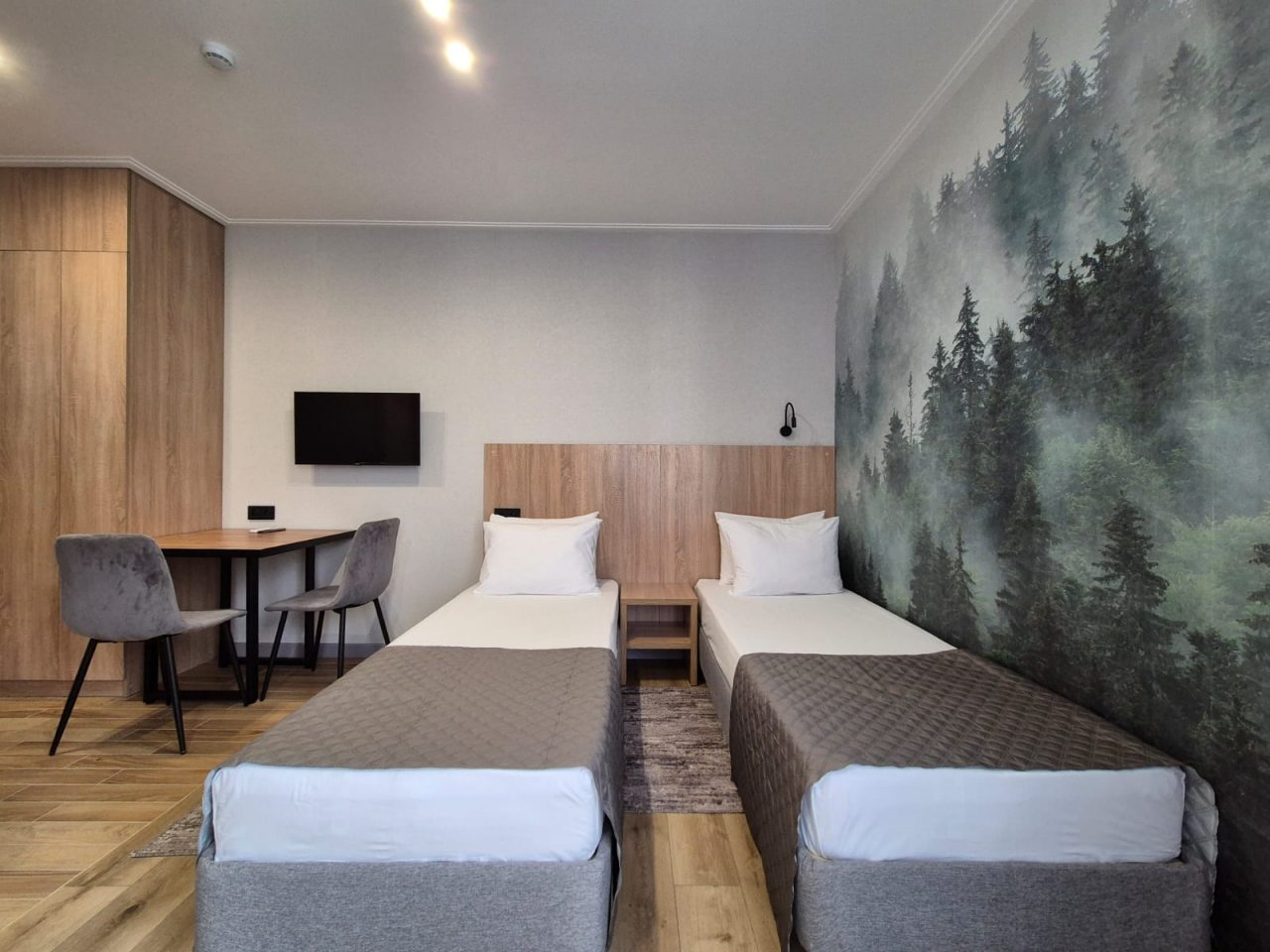 Очень уютные апартаменты! Всё что необходимо есть. Мягкие удобные кровати, в каждой комнате сплит система, телевизор. Нам очень понравилось! Кстати, недалеко расположена столовая Патиссон, неплохо кормят.