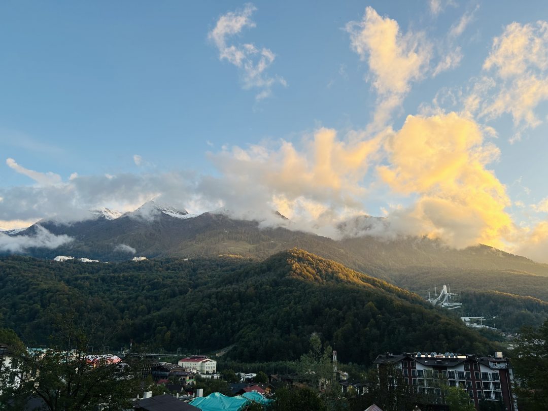 Брали апартаменты в комплексе Панорама. Прекрасный вариант! Мы оформили бронь на двухместное размещение со своей кухней и балконом. Окна в здесь в каждой студии панорамные, благодаря чему можно любоваться горами. Воздух хороший, чистый. Порядок поддерживается во всем комплексе. В душевой кабине отличная подача воды. И вообще с коммуникациями проблем не возникало.