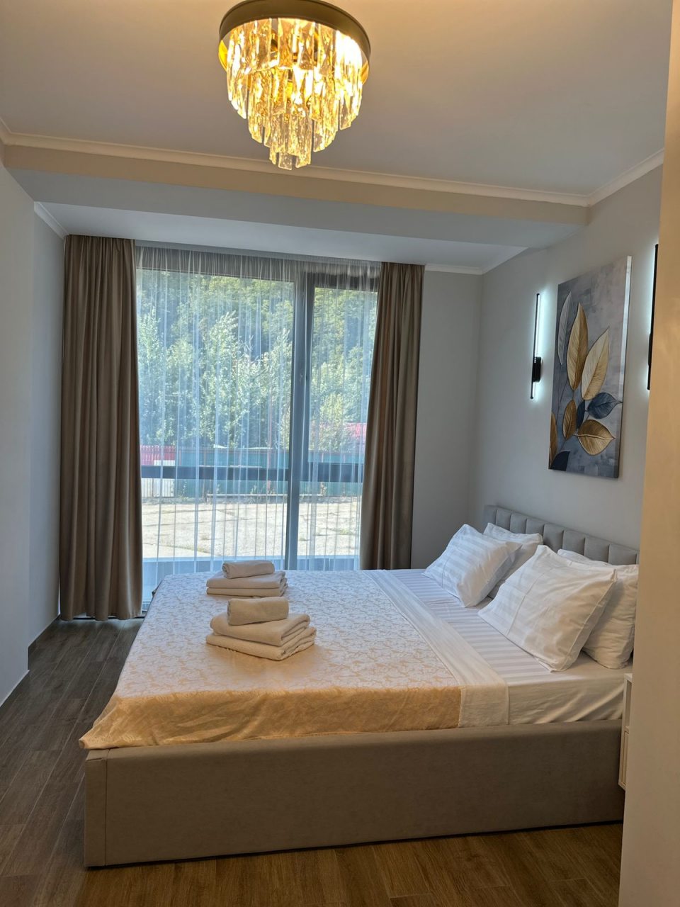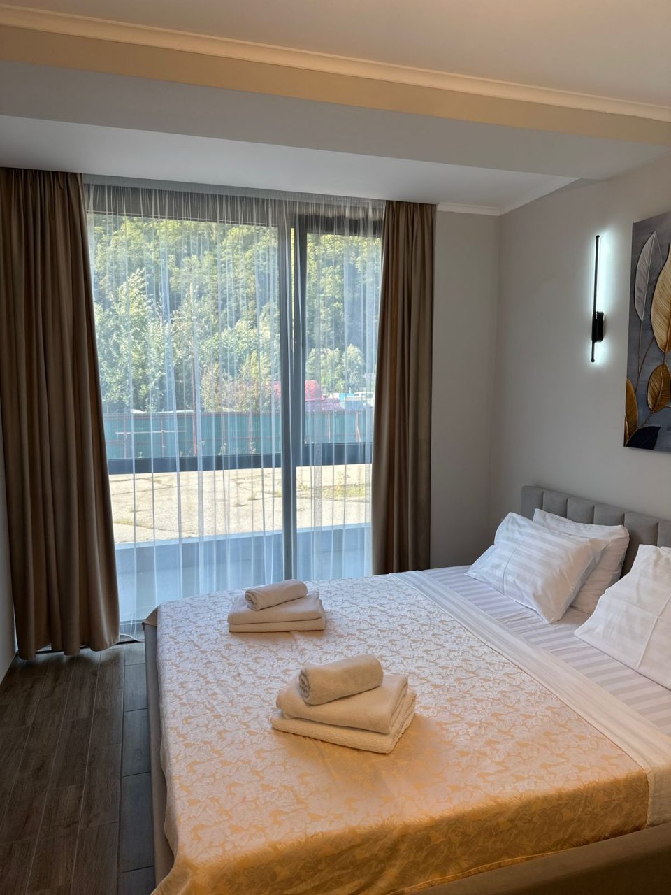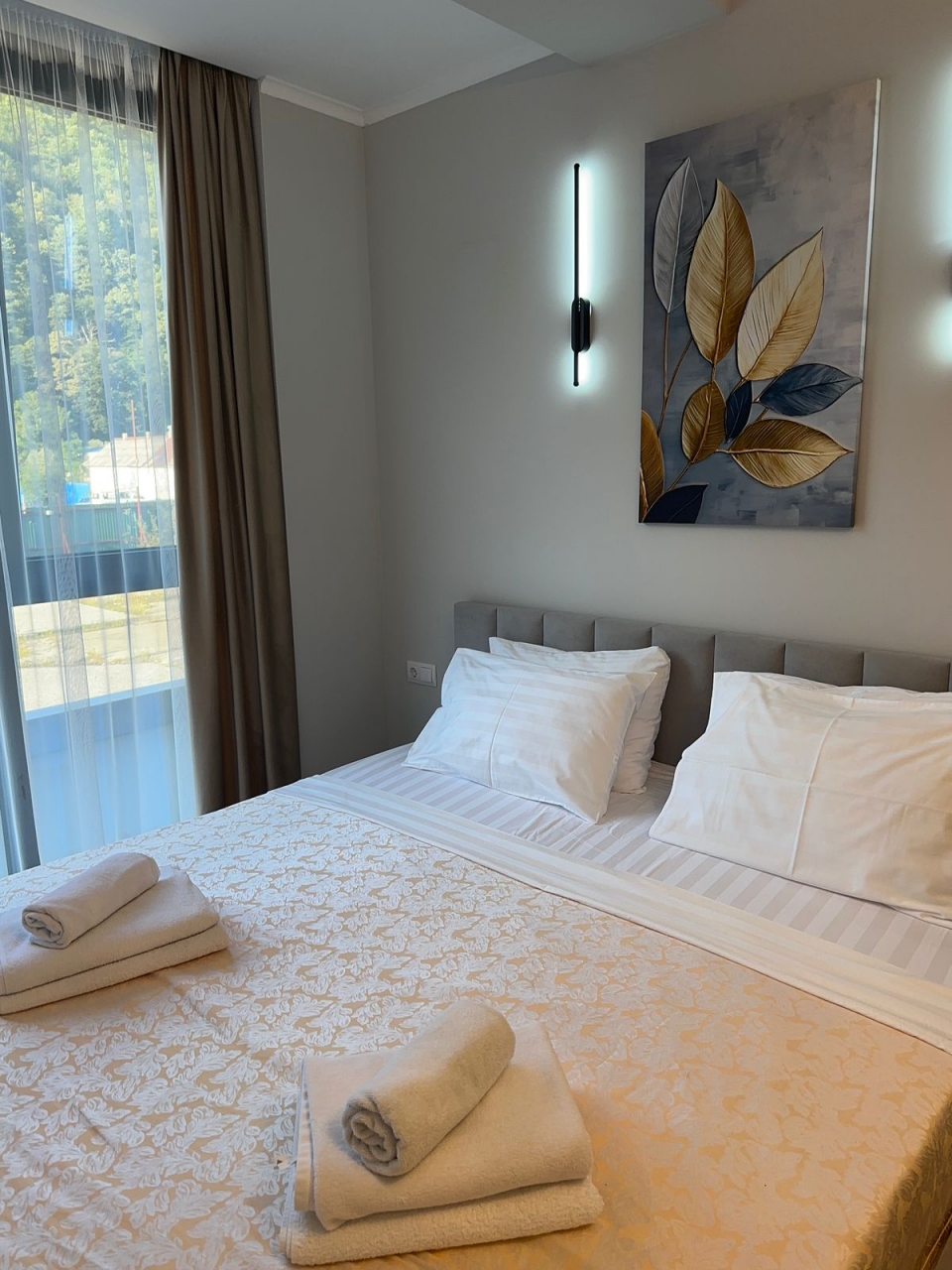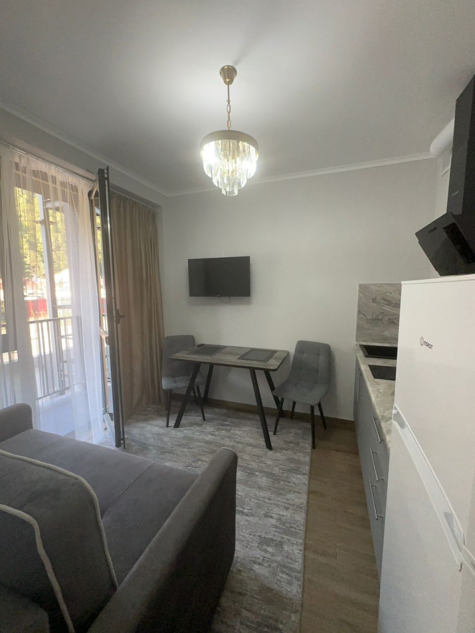 Отличная квартира с прекрасным видом из окон. Очень приятно что владельцы позаботились о предоставлении косметических расходников и халатов, все как в дорогих отелях) а при этом цена демократичная! Понравилась локация, недалеко от станции Роза Хутор и подъемника. Все супер.