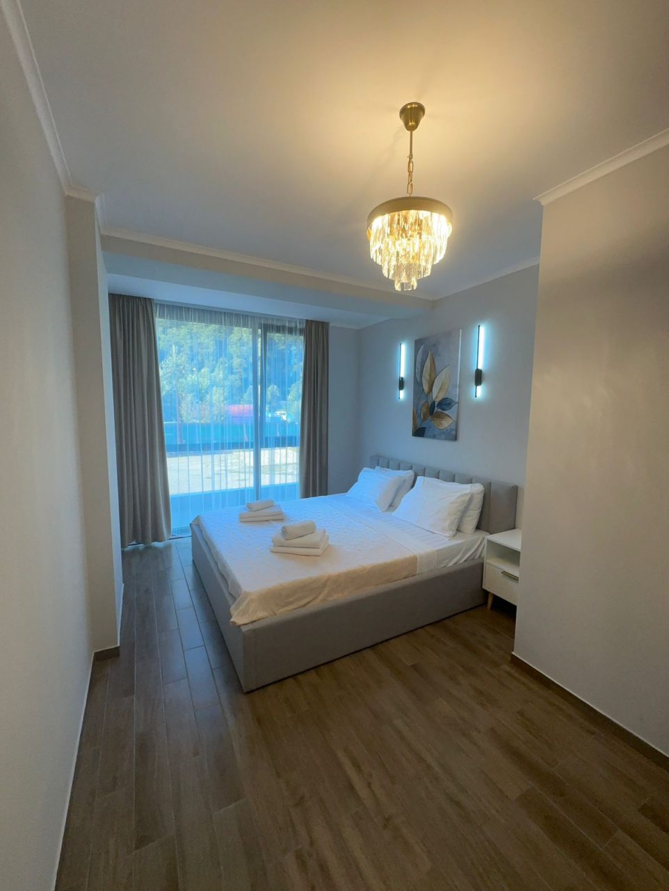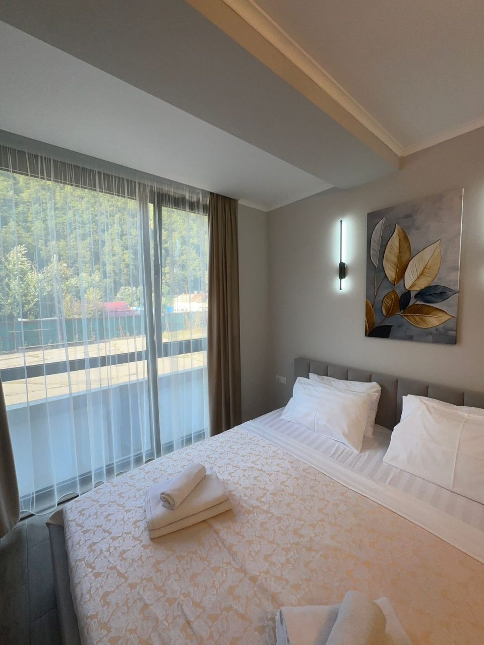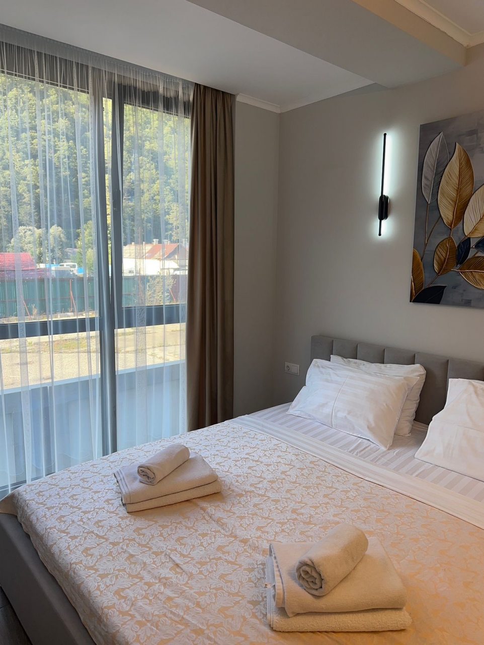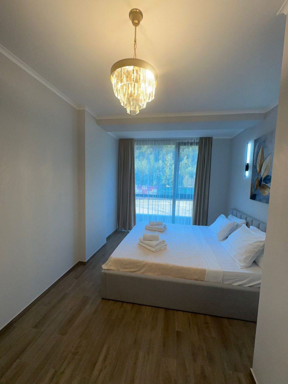 Отличная квартира с прекрасным видом из окон. Очень приятно что владельцы позаботились о предоставлении косметических расходников и халатов, все как в дорогих отелях) а при этом цена демократичная! Понравилась локация, недалеко от станции Роза Хутор и подъемника. Все супер.
