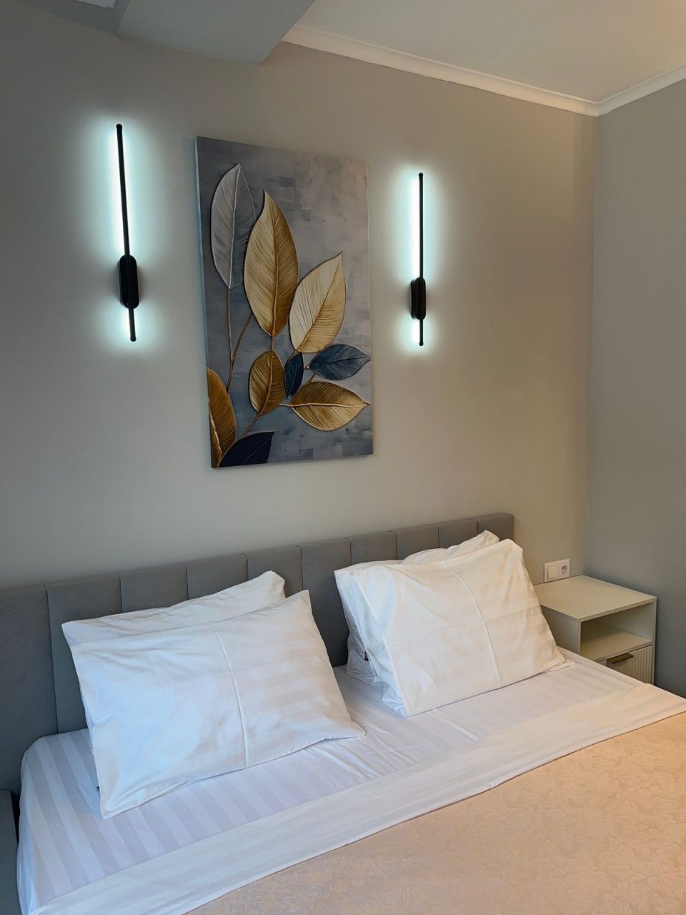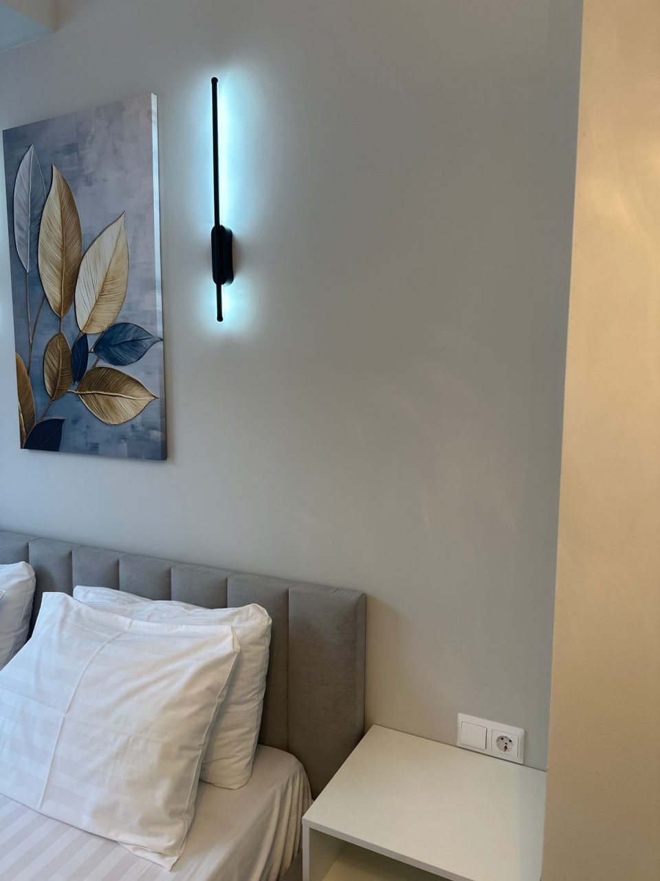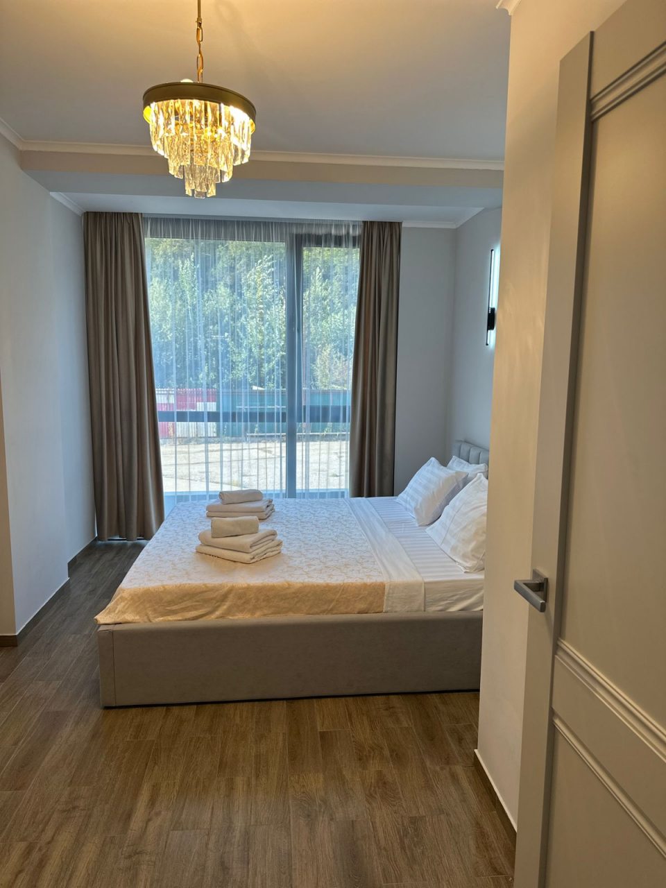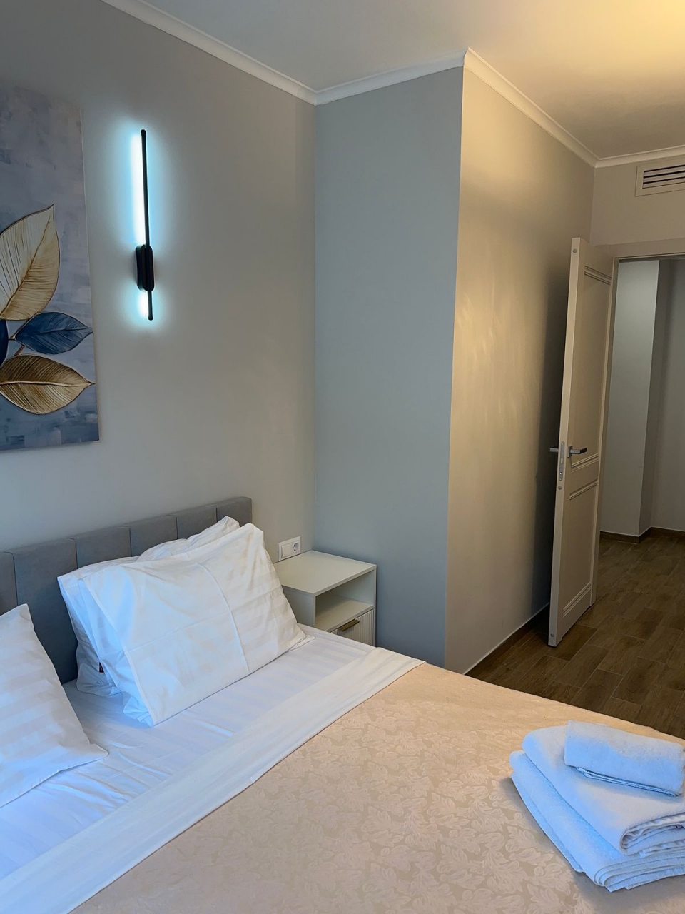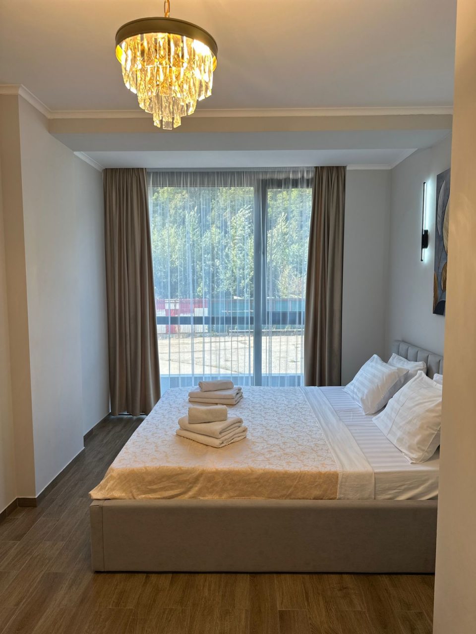 Предлагаются для отдыха и проживания современные апартаменты со всем необходимым. Вид из окон не оставит равнодушными любителей природных пейзажей. Среди удобств можно выделить: телевизор и кондиционер, двуспальную кровать, шкаф для хранения вещей и большое зеркало при входе. Личная ванная комната располагает необходимой сантехникой, набором полотенец, косметическими принадлежностями.