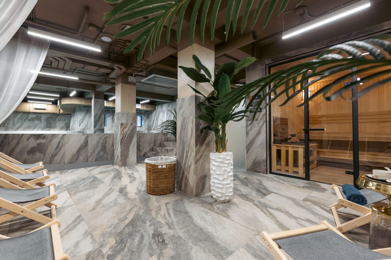 СПА-комплекс отеля включает в себя турецкий хамам и финскую сауну. Это отличный способ душевного и физического обновления. Влажность в турецкой парной достигает 100%, температура поддерживается на уровне 60 градусов. Температура воздуха в сухой сауне достигает 90 градусов, а уровень влажности не превышает 15%. Режим работы: с 12-00 до 22-00 ч.