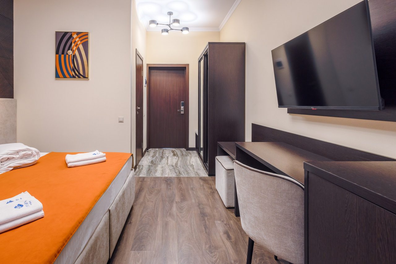 Для выбора доступны различные категории номеров, поэтому каждый сможет найти подходящий вариант. Среди основных удобств в каждом номере — мягкая и удобная кровать, кондиционер, плотные шторы, различные источники освещения, доступ к Wi-Fi, а также собственный санузел с необходимой сантехникой.