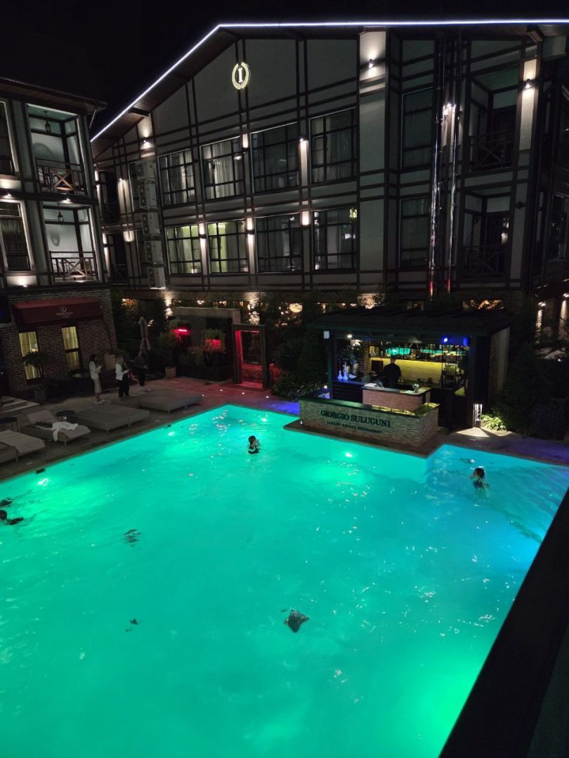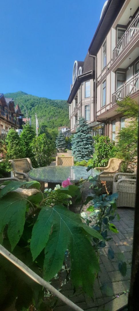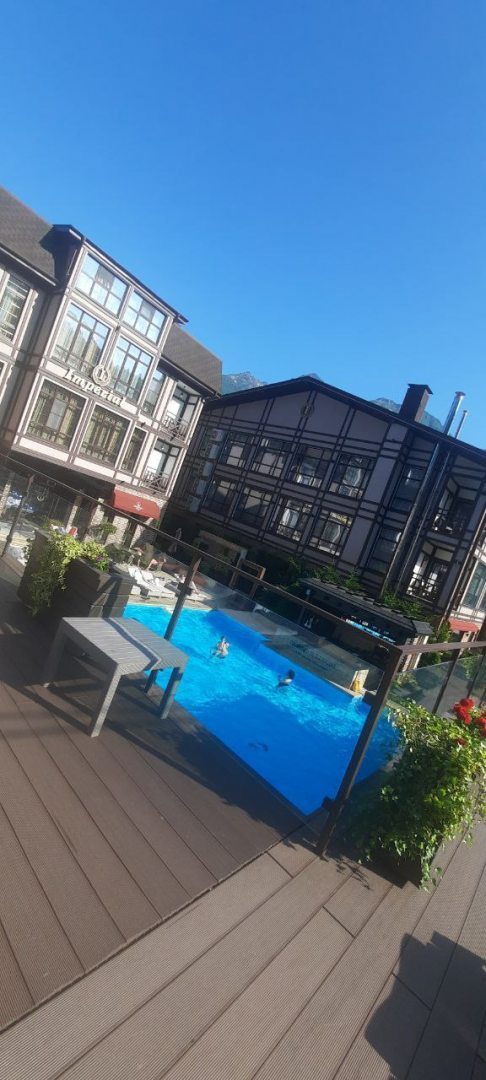 Добрались до отеля на своей машине к часу дня(ехали 12 часов). При въезде в Красную Поляну, попали под сильный ливень, хотя до Сочи погода была просто изумительной. Сразу по прибытии, на ресепшене, нам сообщили, что по техническим причинам сегодня бассейны и СПА не работают. На вопрос, а чем администратор может нам предложить заняться в таком случае, пожал плечами. Пока регистрировались, администратор посоветовал пойти в ресторан и сделать заказ на обед, чтобы мы не остались голодными. Это плюс, и приятно, что о нас подумали. Заселение в номер, сказали, после трёх часов т.к. идёт уборка. В половине четвертого нам сообщили, что номер ещё не готов, и нам нужно подождать ещё минут 5-7. Спросили про "комплимент" в таком случае(ибо уже два "косяка", а мы ещё даже номер не видели). Сказали, что доставят в номер тарелку с фруктами и сок. Мы попросили вместо этого бутылочку шампанского, нам отказали. Мелочь, но осадочек остался. В итоге заселили нас только в 16:00.