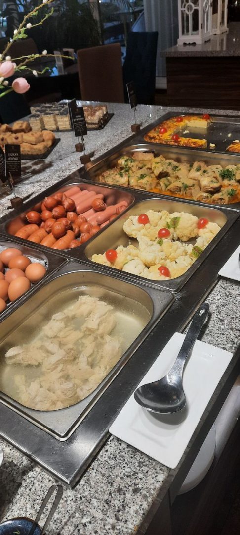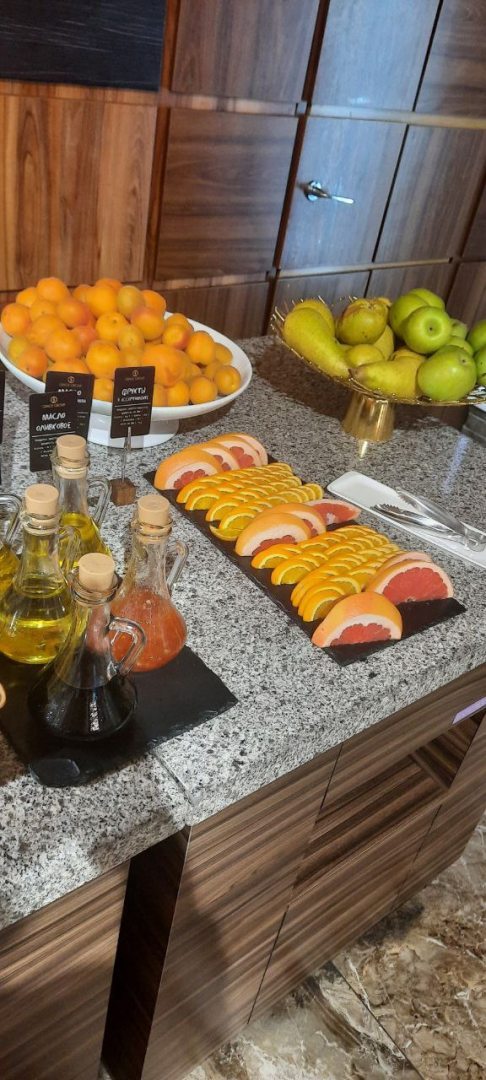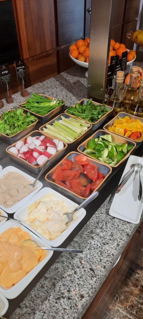 Про питание. Написано, что питание по системе "шведский стол". Однако по факту эта система распространяется только на завтрак. На обед и ужин предлагается первое, горячее, салат, напитки(чай, кофе (очень вкусный), соки) и сладкое каждого по два варианта, выбираешь либо то, либо другое. Заказ на обед делаешь утром, на ужин в обед и т.д. Еда вкусная, продукты чувствуется, что выбирают качественные. Можно попросить и вам соберут еду с собой. Отдельно хочу отметить официантов. Девочки такие милые. Приветливые, быстрые, просто умнички!