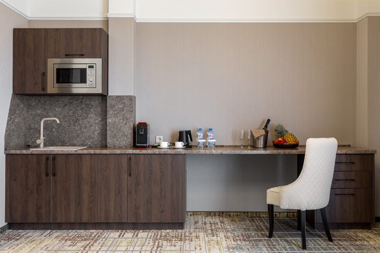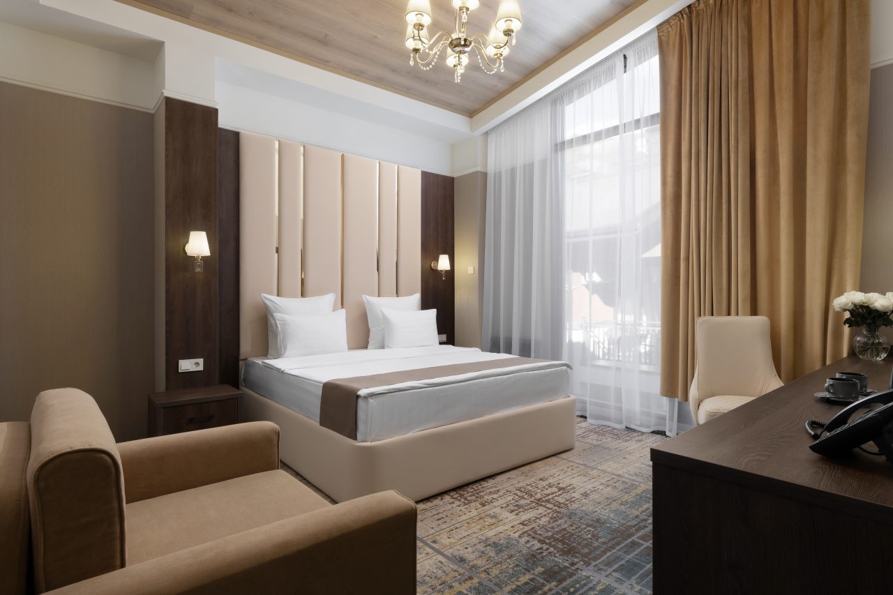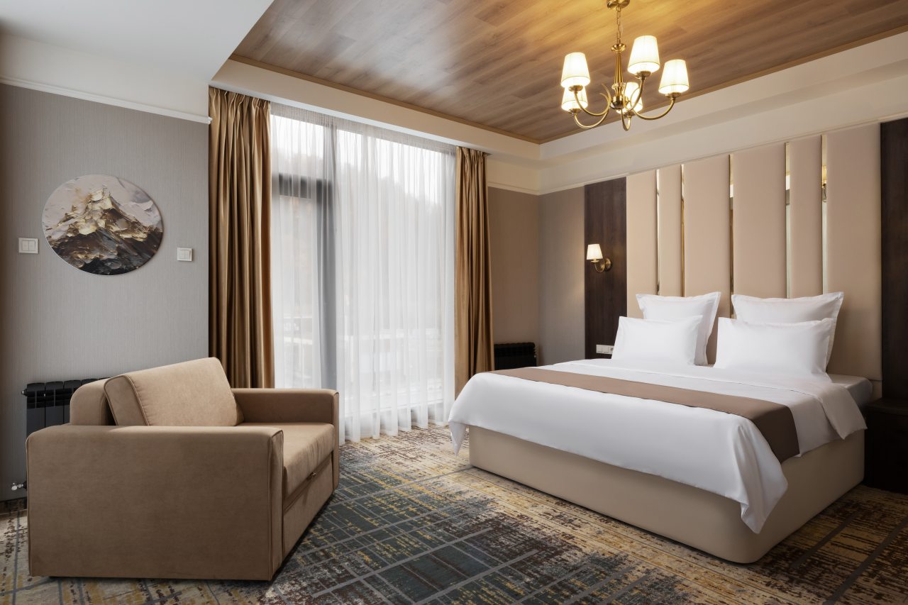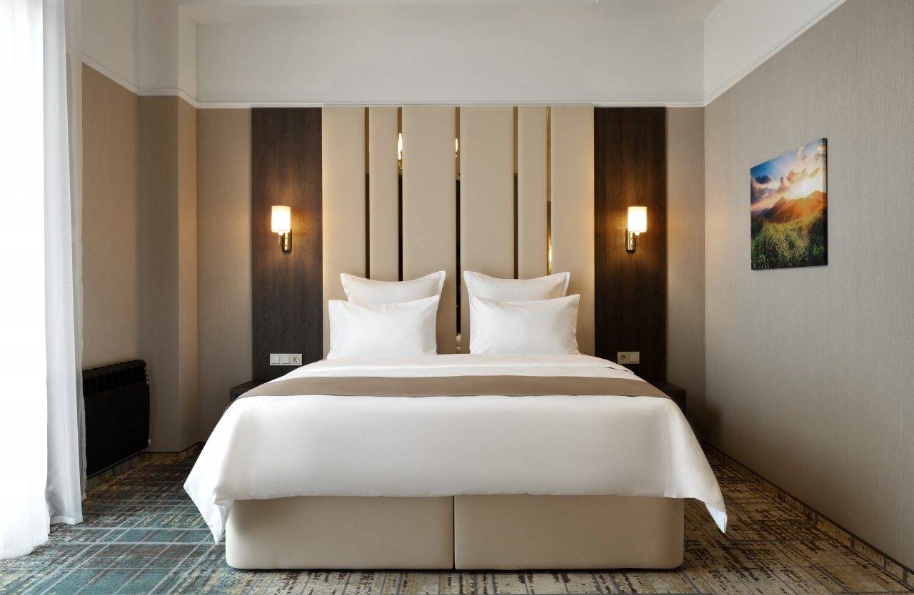 Качество и высокий уровень сервиса — это то, что гости смогут ощутить в данном объекте размещения. Линейка категорий номеров обширна, поэтому каждый сможет подобрать идеальный вариант. В номере есть вся необходимая техника и мебель для комфортного проживания: удобное и просторное спальное место, телевизор, Wi-Fi, гардероб и мини-бар.