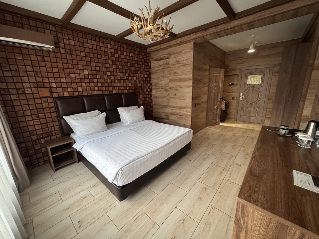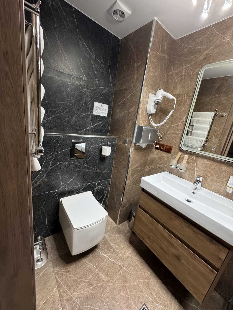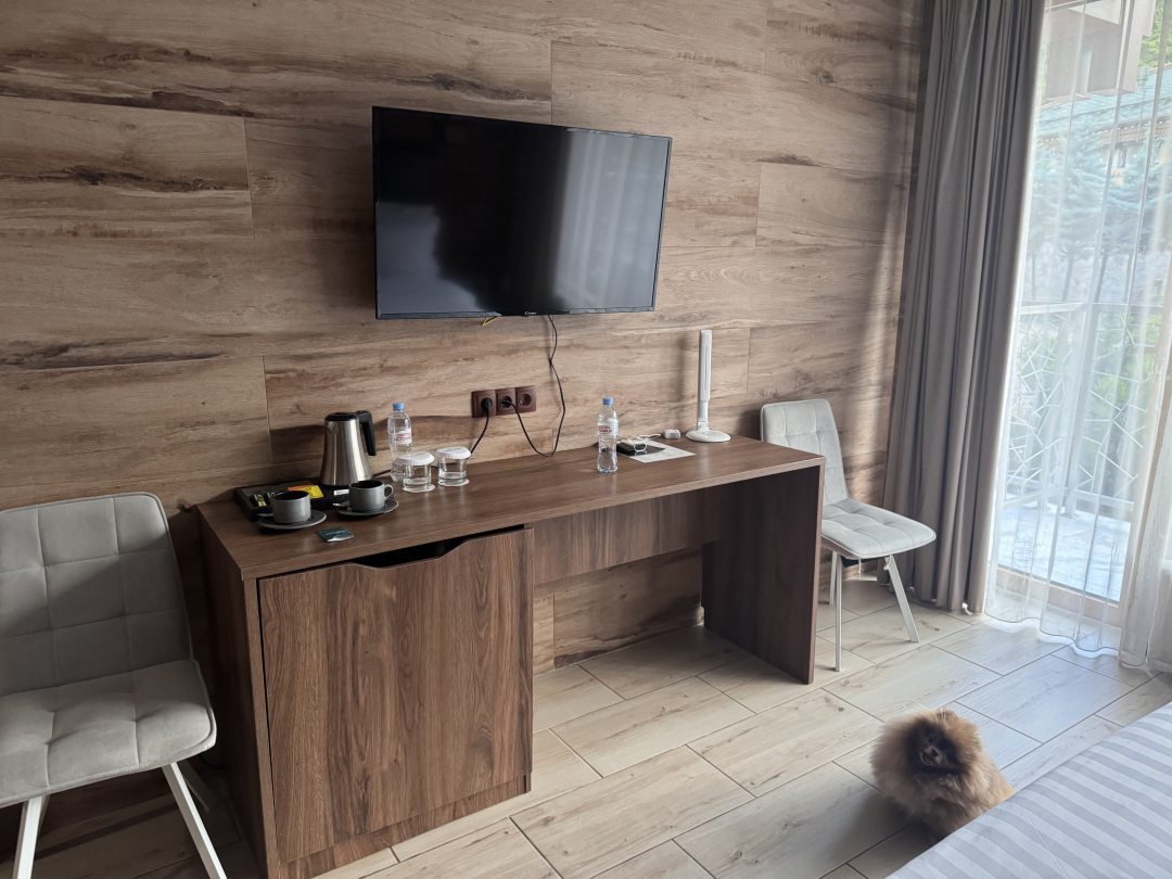Из недостатков: телевизор, про который не раз до нас оставляли негативные отзывы. Думаю уже можно было решить эту проблему со smart tv. Попытки настроить были тщетны. Так же из незначительного это уже потрепаетесь жизнью халаты и сломанный светильник в номере.