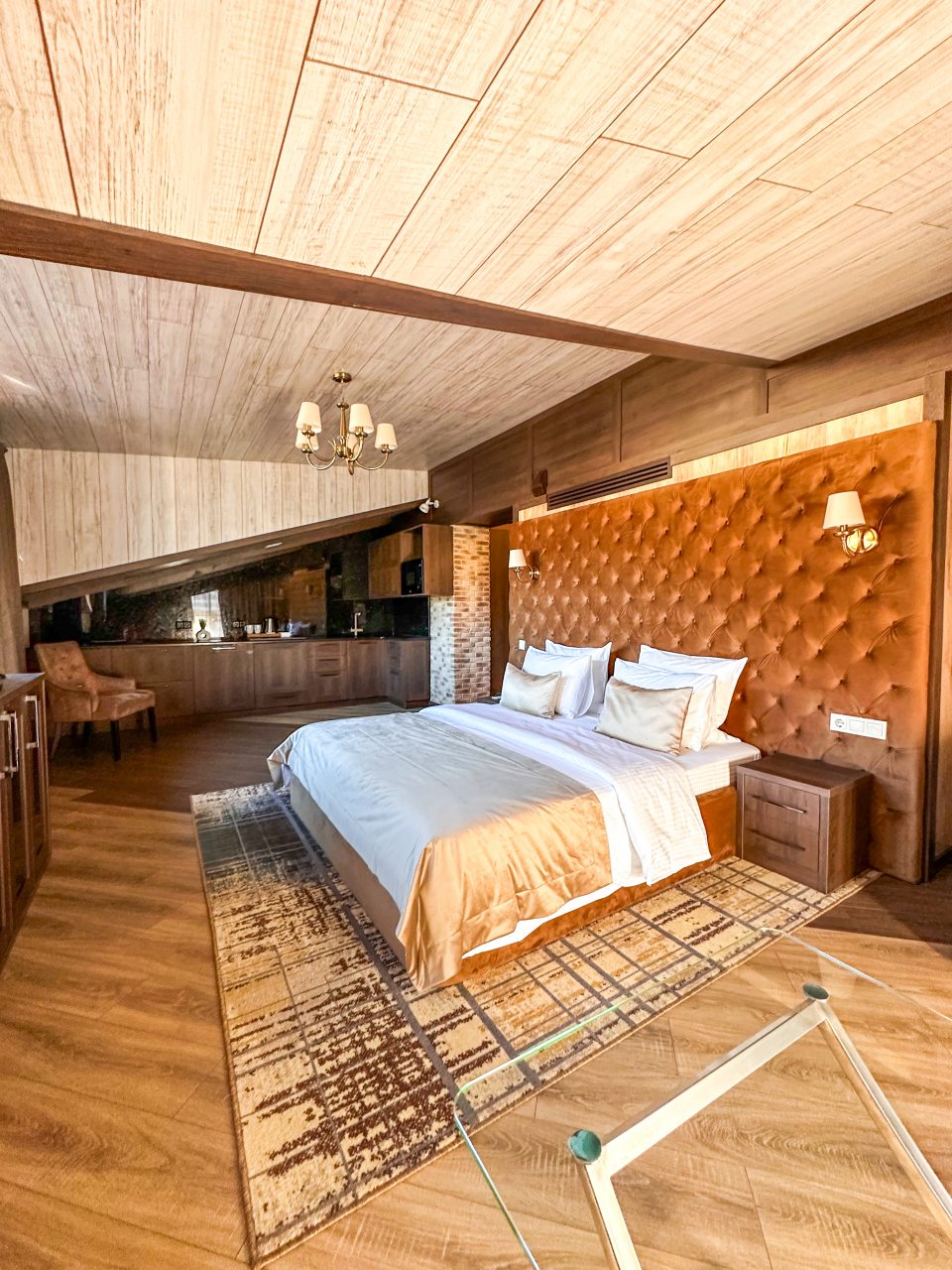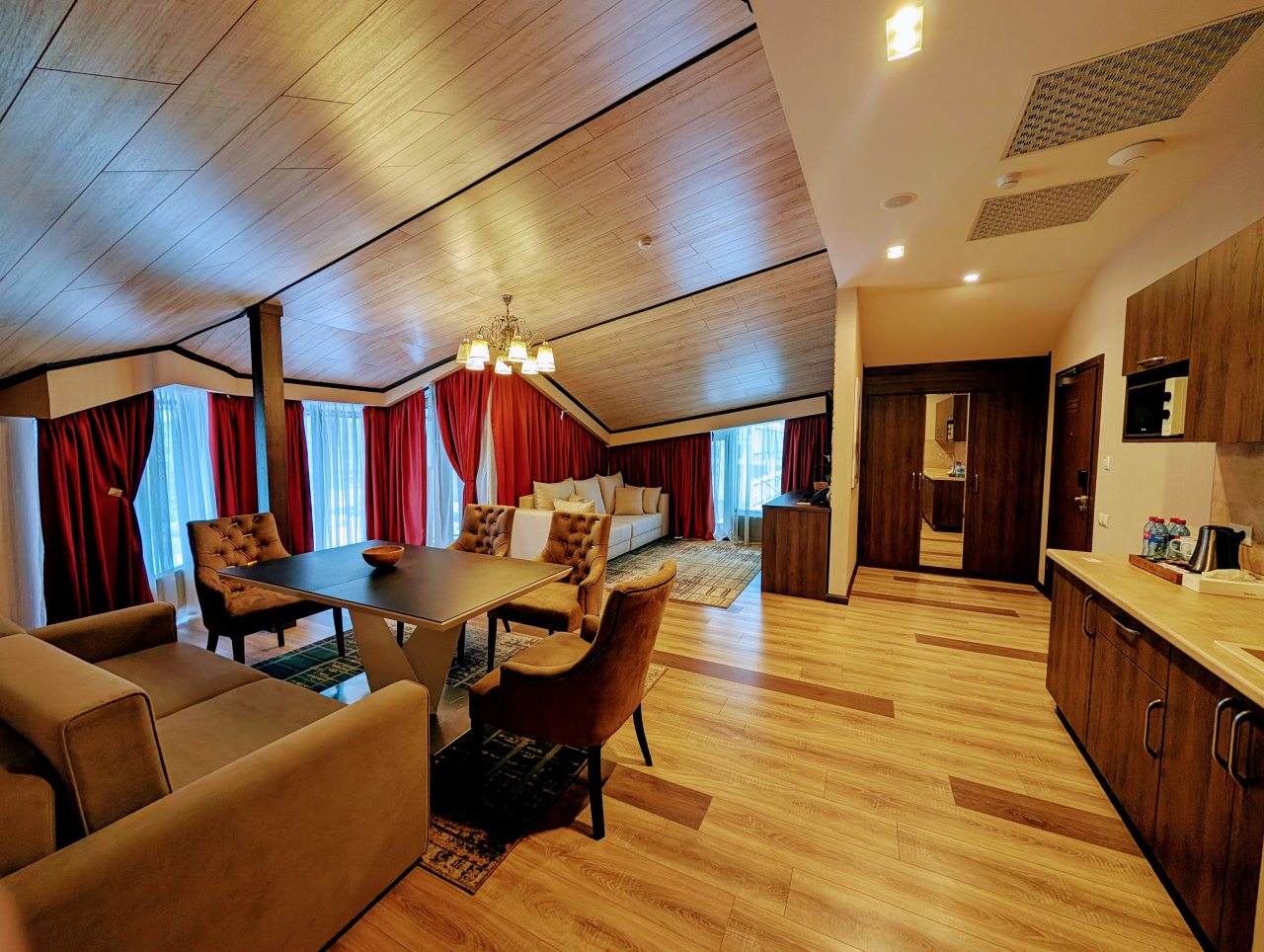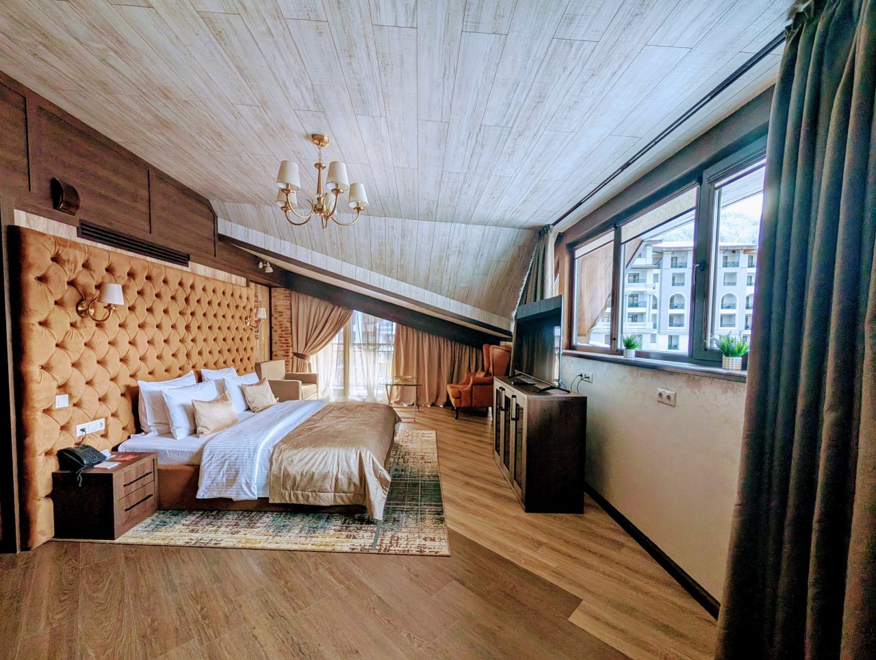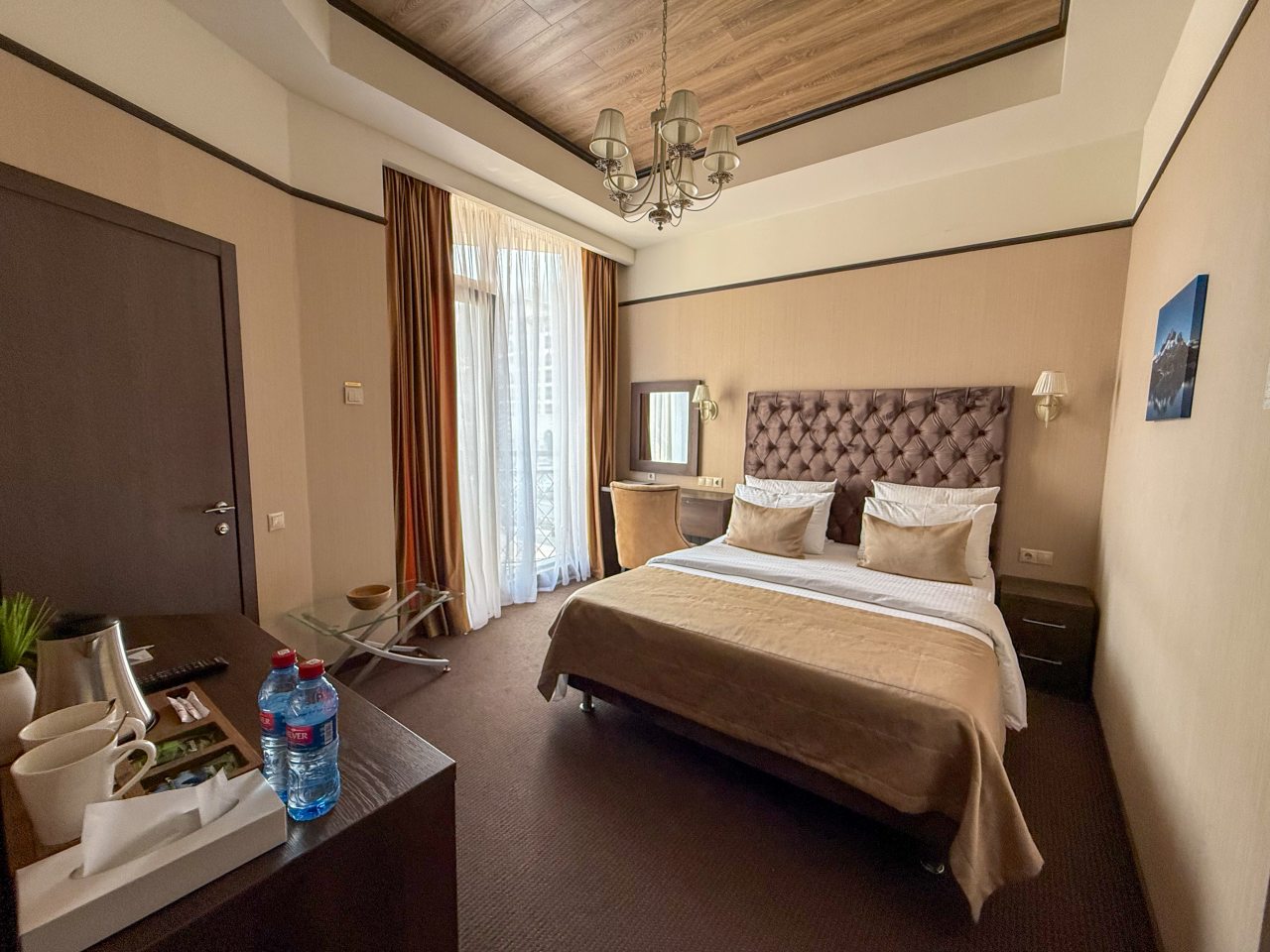 Здраствуйте, проживала мама с двумя дочками 16 лет. С 08.06-10.06.25, понравилось все!!!! Жили на 3 эт., в отеле есть лифт, дверь за Вами открывают и закрывают, вещи Вам принесут в номер, все улыбаются. В номере чисто, есть фен, гладильная доска, утюг, сейф, тапочки, халаты, зубные щетки с пастой, расческа, пилочка для ногтей, палочки ушные, диски ватные, гель для душа, шампунь, бальзам для волос. До канатки 600 м, все кафе, бары, рестораны, пяторочка, перекресток, аптека возле Отеля). В Спа и в бассейне открытом свои полотенца, из номера брать не нужно)). Завтрак- шведский стол- вкусный, свежий, разнообразный. Всем рекомендую и родителям с маленькими детками и взрослым!!!! Всех Благодарю!!!!