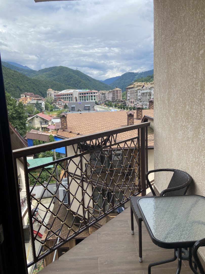 Хорошее расположение - очень близко в отелю Сочи и подъемнику для катания. Отличный вид из номеров на горы.