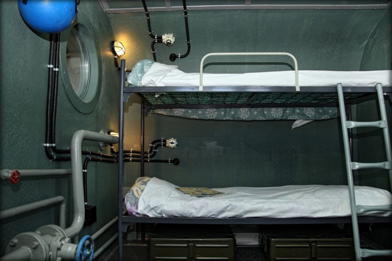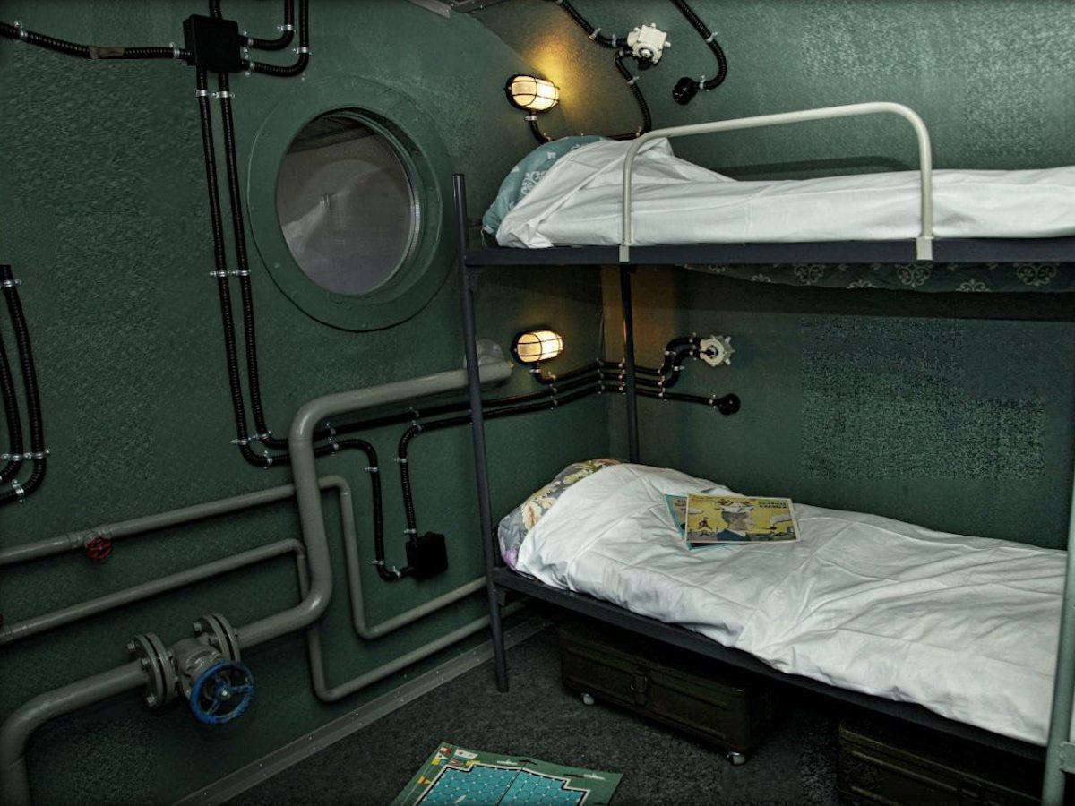 Здесь вы сможете проникнуться атмосферой подводной лодки, что будет интересно как взрослым, так и детям. Для комфортного проживания и отдыха имеется всё необходимое, в том числе удобные спальные места, современная техника, камин для душевных вечеров, домашняя мини-библиотека, а также различные ретро-предметы, которые можно изучать на досуге.