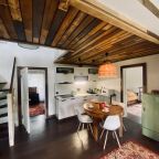 На кухне будет приятно готовить любимые блюда, так как в наличии варочная панель, тостер, СВЧ, холодильник, чайник и уютная обеденная зона.