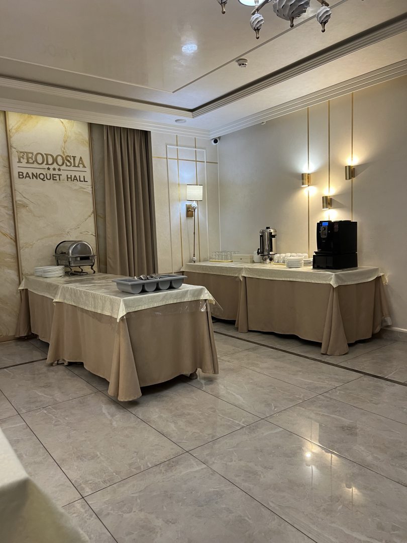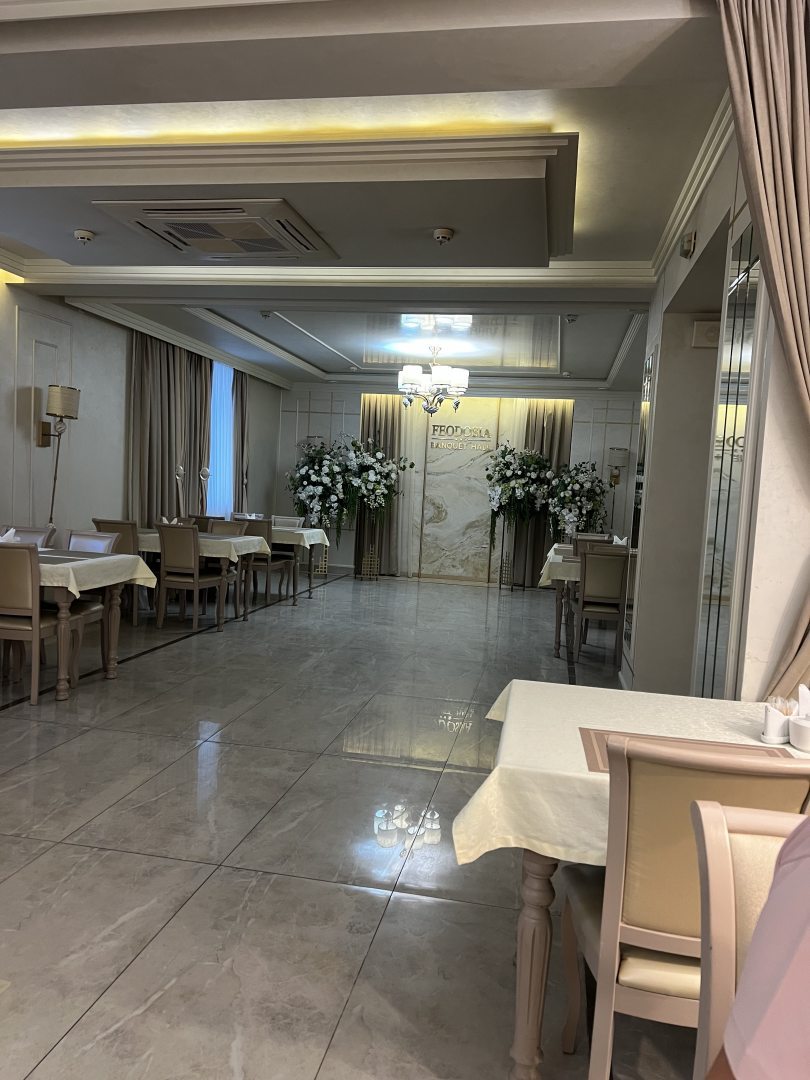 На ресепшене заселили быстро, предложили кроватку детскую! После предложили по обедать, мы не отказались с дороги и были очень приятно удивлены, какой вкусный борщ , пюре с люля и салат !!! Просто превосходно и всего за 650 с человека! Красивая обстановка в столовой, запаха кухни нет !