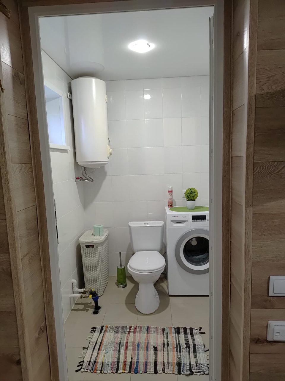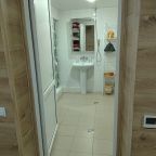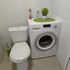 Это отличный вариант для отдыха семьей или компанией, так как в наличии удобные диваны, различная мебель для хранения вещей, санузел со стиральной машиной, душевой, раковиной, туалетом.