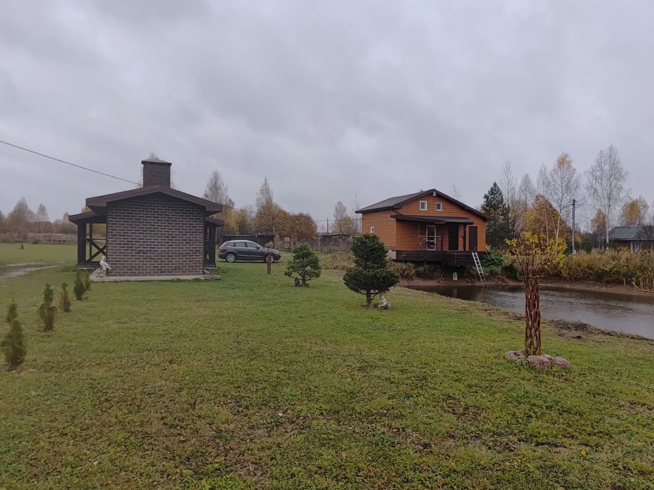 Коттедж С баней и пирсом на берегу пруда