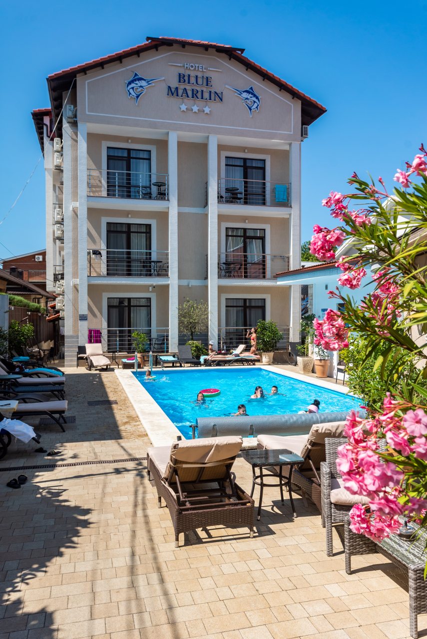 Отель «Blue Marlin Hotel» находится в Геленджике, неподалеку от Центрального рынка и основных достопримечательностей города-курорта. Для удобства гостей предоставляется круглосуточная стойка регистрации и трансфер за дополнительную плату.