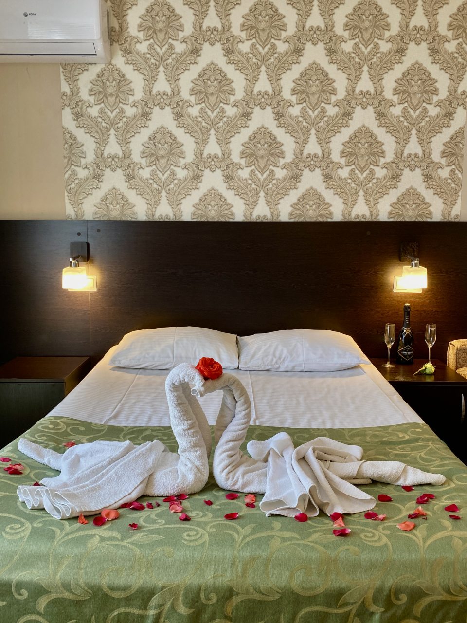 Отдых получился дорогим, честно. Однако общее впечатление отличное, отдых прошел классно. До моря идти не далеко. Все условия для проживания созданы, есть детская площадка, бассейны и открытая кухня, мангал. Номер прибранный, к этому претензий нет.