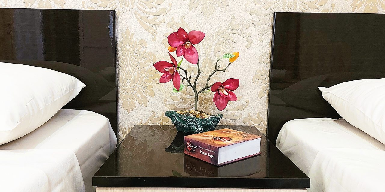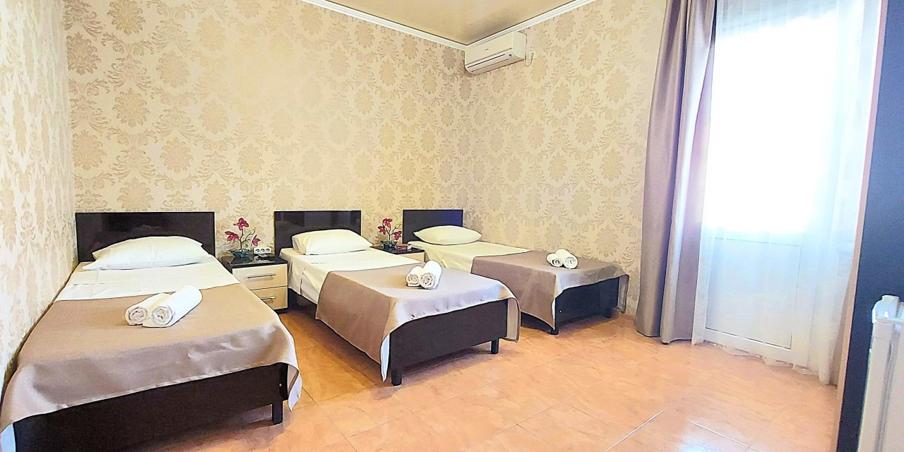 Для размещения предлагаются разнообразные по вместимости и категориям номера. Внутри каждых имеются необходимая мебель и техника, включая удобные кровати, шкафы, кондиционер, санузел с раковиной, душем, туалетом.