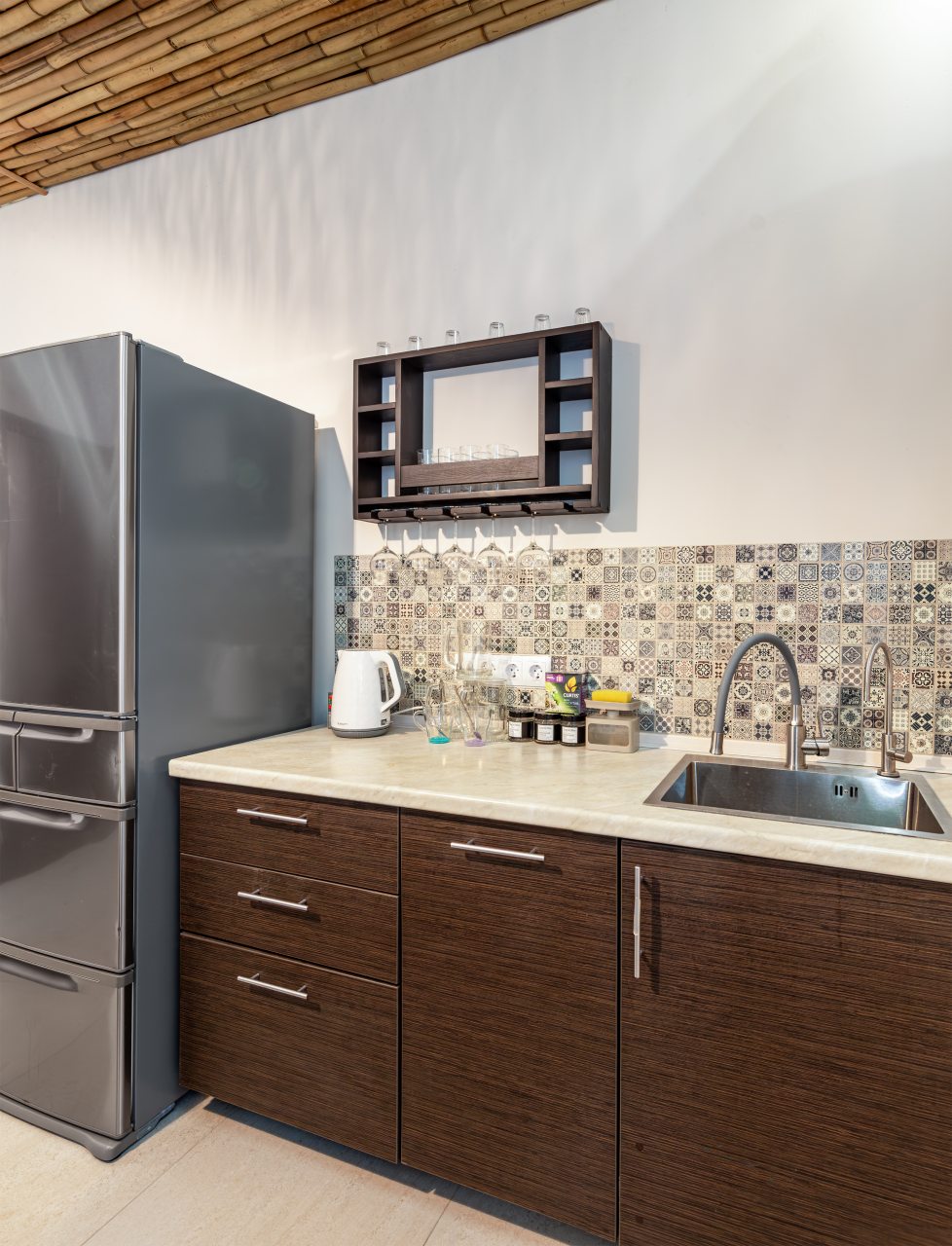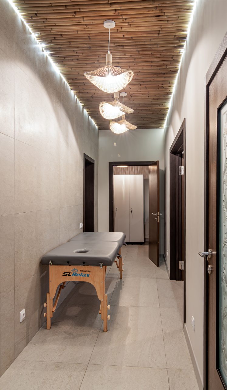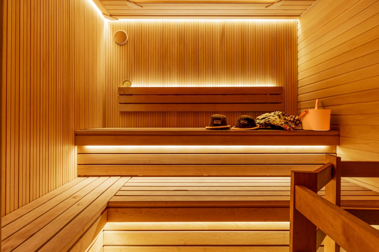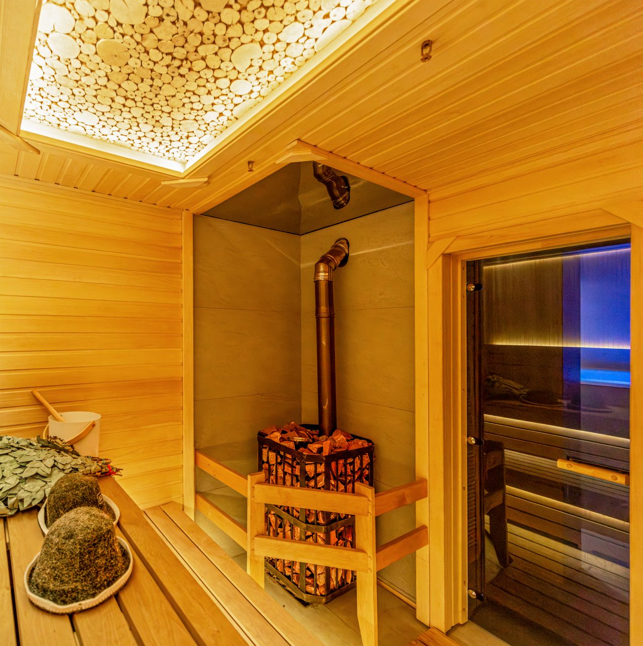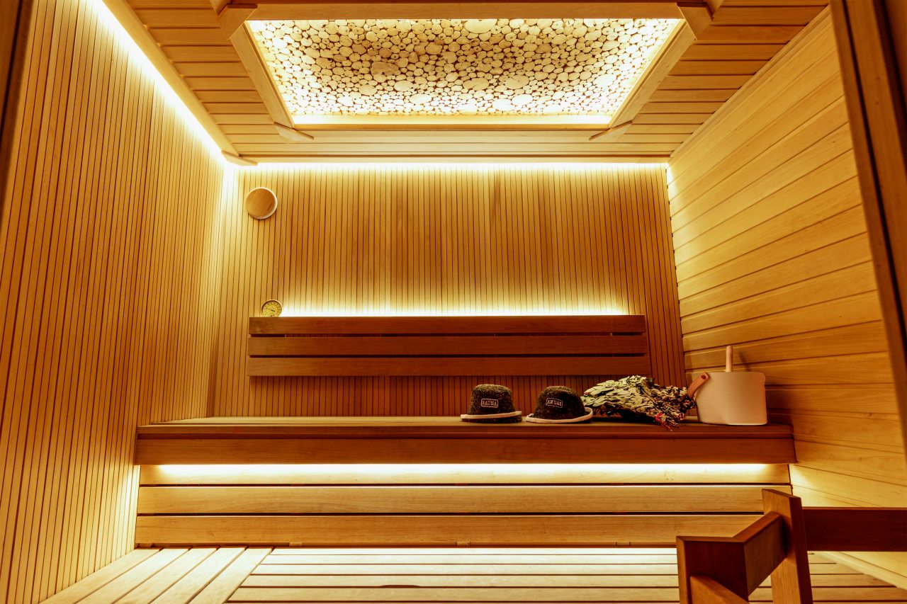СПА-зона с подогреваемым бассейном, с гидромассажем, джакузи и завораживающим водопадом. Обливная бочка с холодной водой и душ в зоне бассейна. Сауна в зоне бассейна.