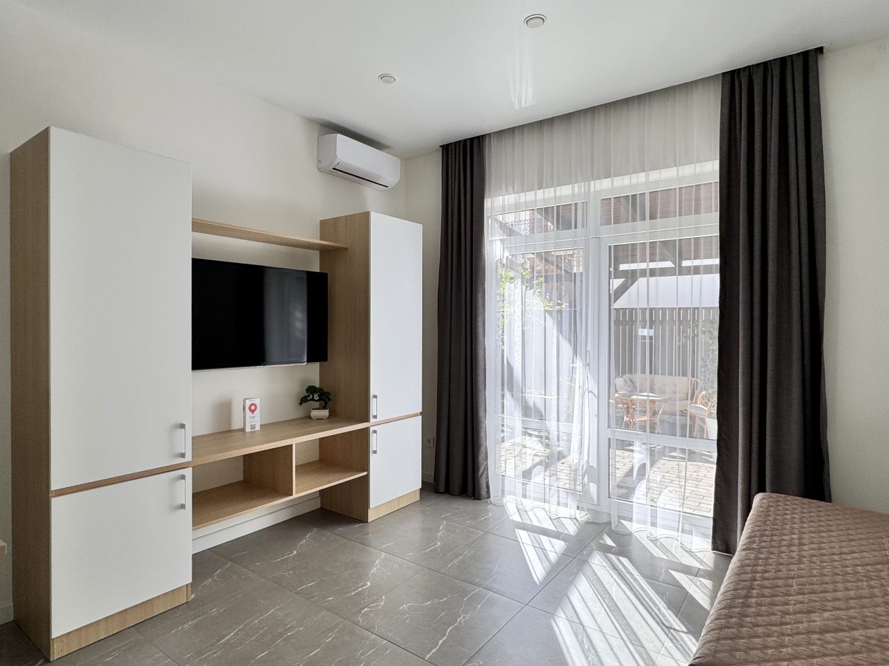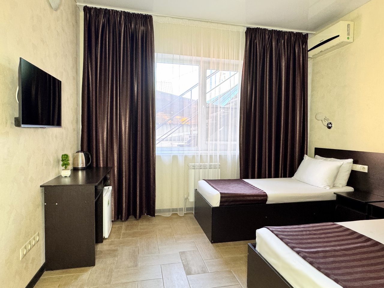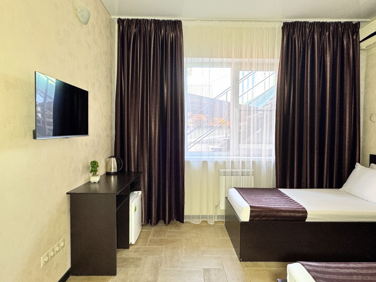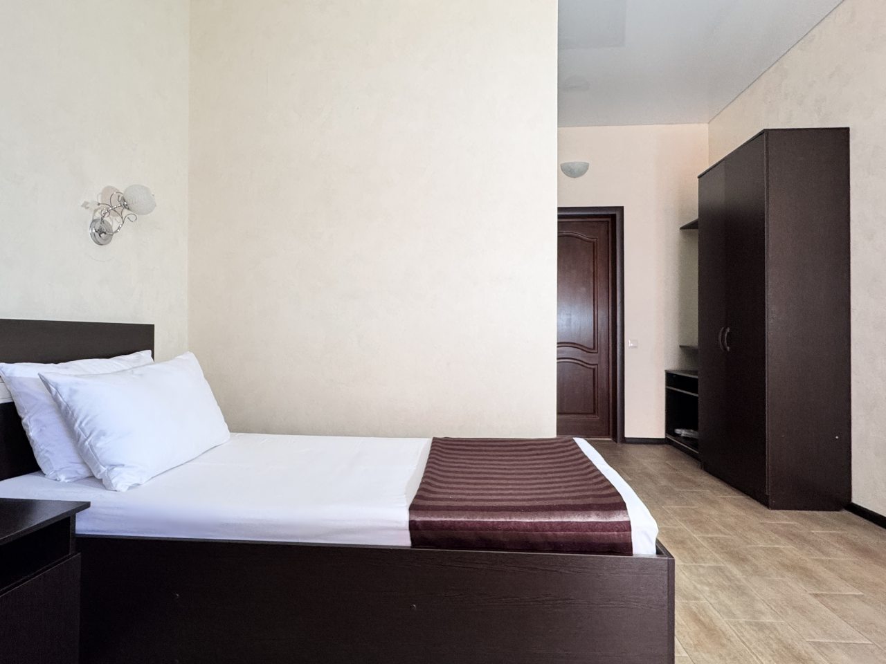 Приезжали с мужем на отдых. Заранее забронировали номер Комфорт двухместный. Хочется отметить чистоту общих помещений: холла и коридора. Очень приятно находиться в свежем и чистом пространстве. Номер выдали также убранным и подготовленным. Были необходимые гигиенические средства, чистое постельное белье. Вся техника работала: телевизор, чайник, холодильник. За которое время отдыха успели несколько раз искупаться в бассейне. Весь отдых прошел на ура, и приятно понимать, что пребывание здесь его не только не омрачило, но и сделало только чудеснее и приятнее. Порекомендовали это место друзьям. Может быть, в следующем году вместе приедем.