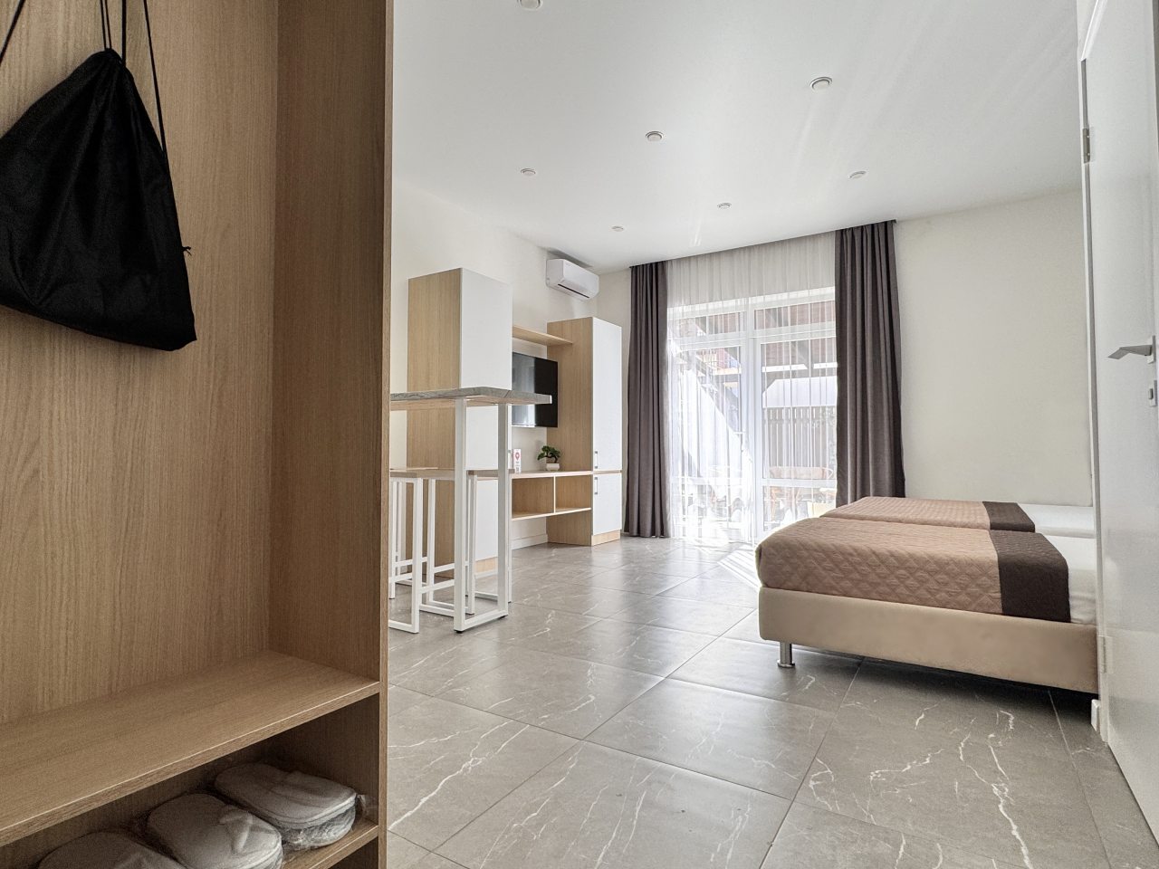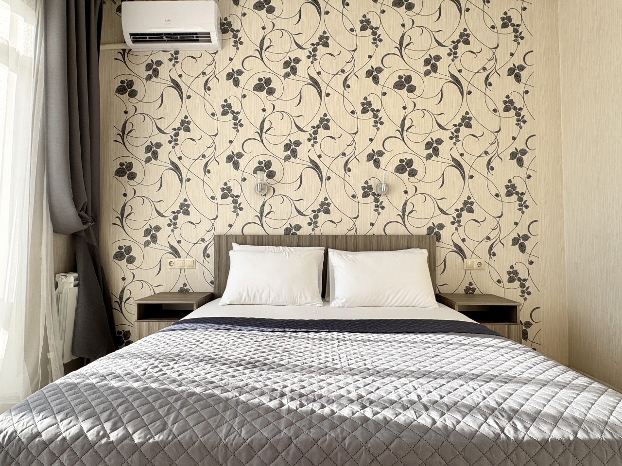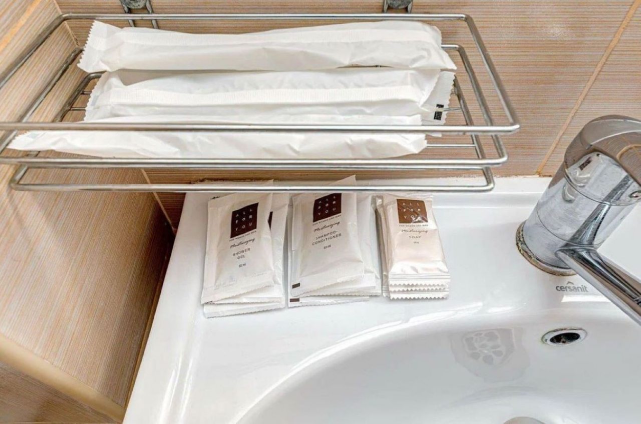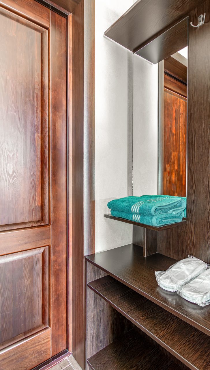Каждый номер оснащен необходимой техникой и мебелью, включая удобную кровать, телевизор, шкаф, различные источники освещения. Санузел укомплектован раковиной, душевой, туалетом.