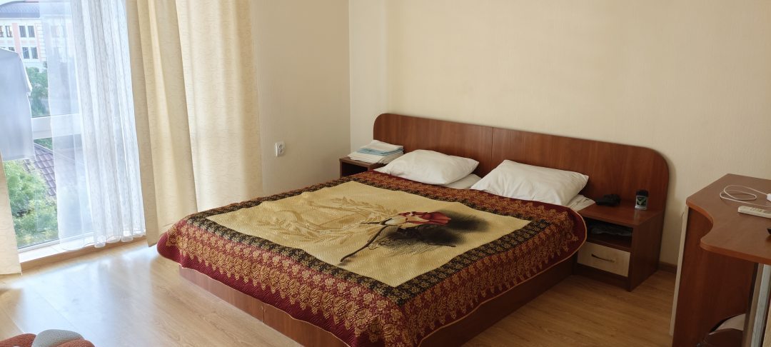 Просторный номер. Когда бронировали, еще были сомнения, но в итоге понравился всем. Есть завтраки и питание в столовой, дети ели с удовольствием. Есть балкон в номере. Небольшой, но всё-таки. В свободном доступе общая кухня.