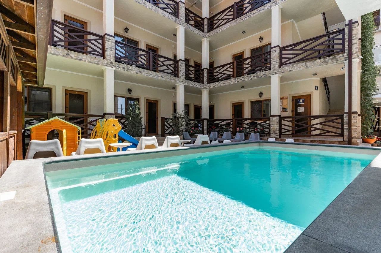 Чисто, белоснежное постельное и полотенца. Чистый бассейн, ухоженная, уютная территория, вежливый администратор, удобство заселения, есть где поставить машину, для детей есть кабель, балкон с мебелью для приятных вечеров. К морю идти 7-10 минут. На берегу центральный пляж с множеством ресторанов, кафе, столовых, парком аттракционов, яхтами, клубами, магазинами. Все что нужно для отдыха.