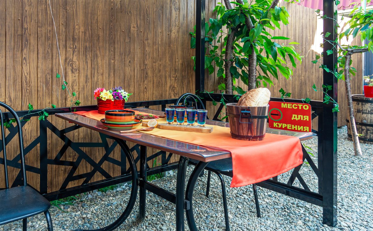 Кухня оборудована техникой и посудой. В нескольких шагах находится магазин с продуктами. Также оборудована мангальная зона, где гости смогут самостоятельно приготовить мясо и овощи.