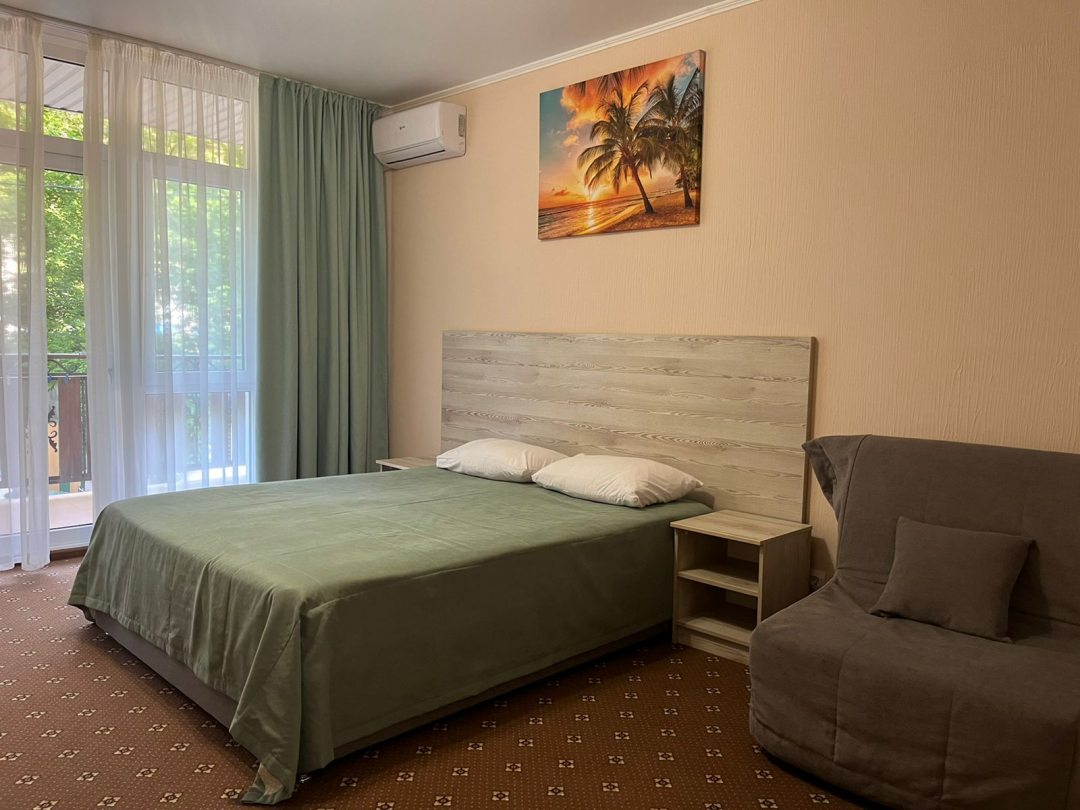 Трехместные стандартные номера оснащены односпальными раздельными и двуспальными кроватями, телевизорами и собственными душевыми комнатами. Из некоторых номеров есть выход на балкон, где обустроена лаундж зона со столиком.