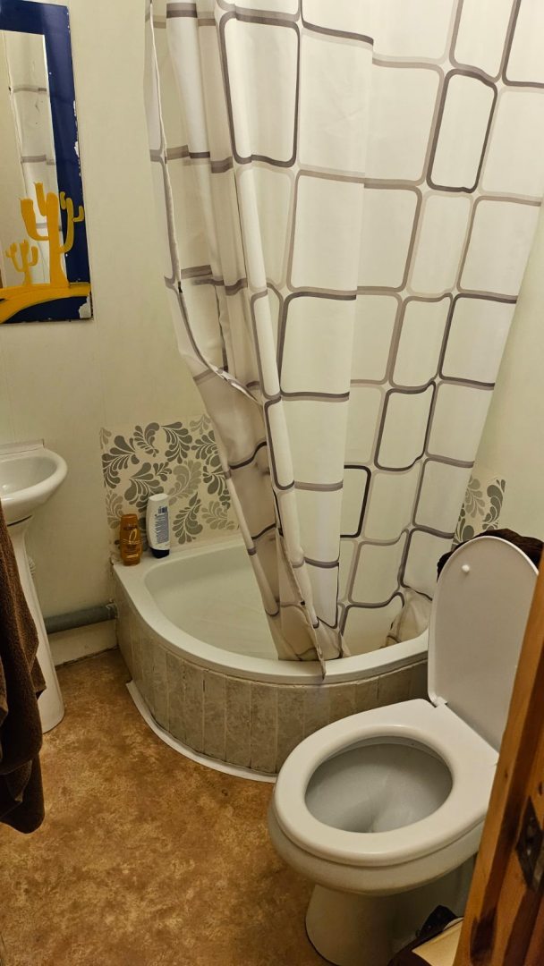 Унитаз грязный , в душ кабине у лейки постоянно меняется напор,умывальник такой мини,что лицо нереально умыть просто подсунуть потому что полка с зеркалом (которое на помойку надо нести)установлена низко.