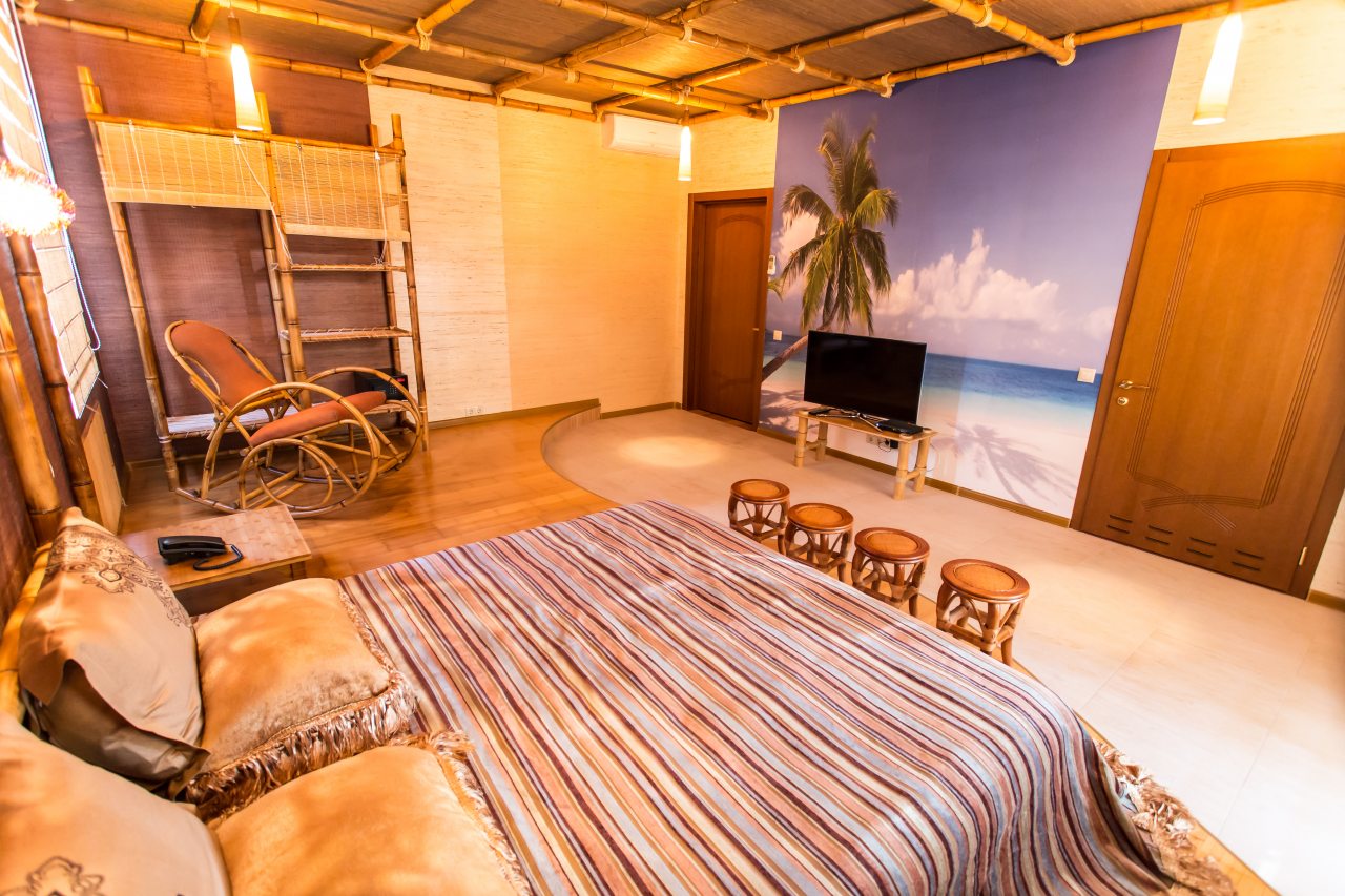 В гостевом доме занимали номер Deluxe, от которого мы остались в полном восторге. Очень впечатлила обстановка, все оформлено со вкусом и в качестве. Не меньше восторга вызывает и сама территория этой резиденции. Есть свой пруд, прогулочные зоны, в оформлении используются приемы ландшафтного дизайна. Бассейн свой тоже предусмотрен. Рядом находятся кафе и рестораны, а завтраки подаются в номер непосредственно в гостевом доме.