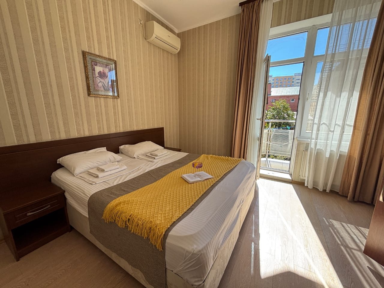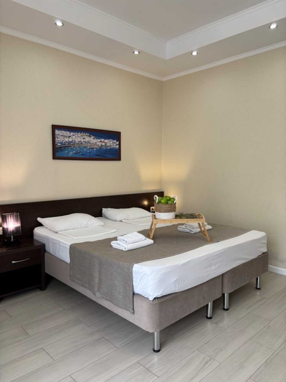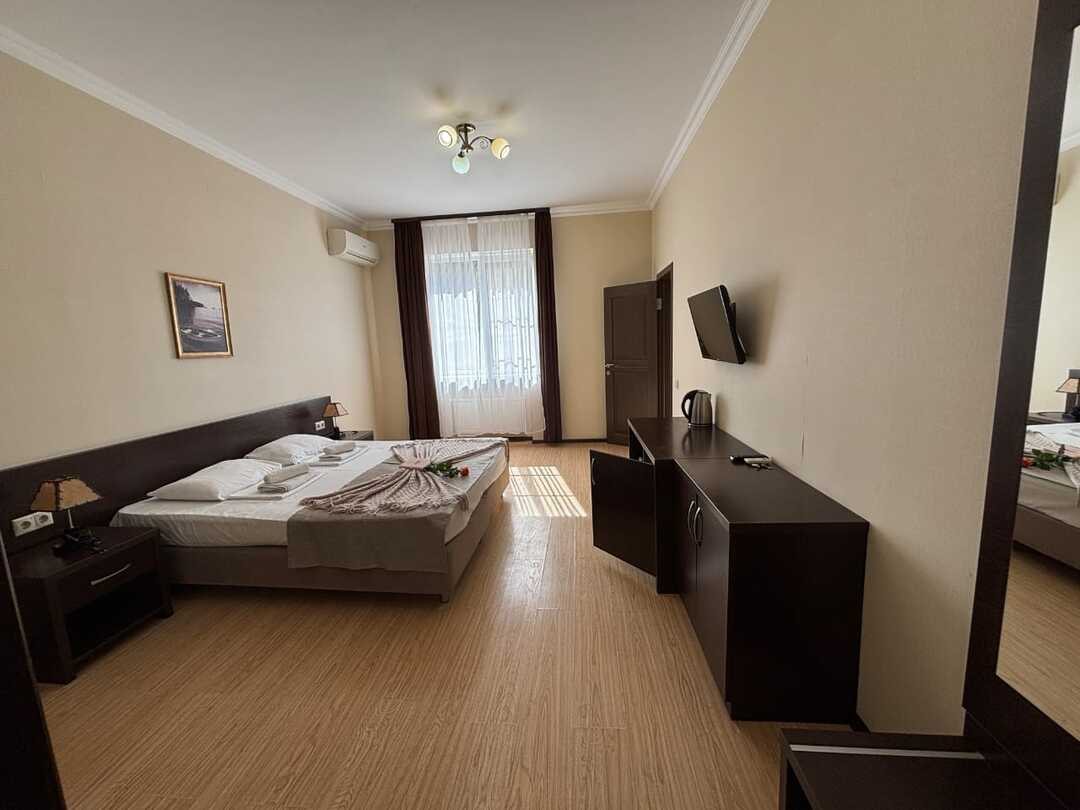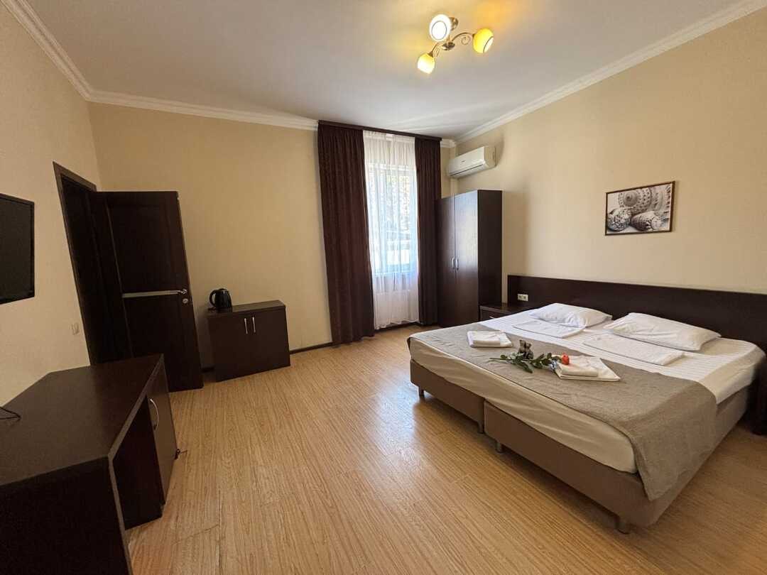 Этот вариант прекрасно подойдет как семьям, так и индивидуальным путешественникам, так как доступны различные категории: «Двухместные», «Трехместные» и «Четырехместные» номера с балконом и без. В каждом номере все продумано для полноценного отдыха, включая кровати с удобными матрасами, холодильник и чайник, бесплатный Wi-fi, телевизор, сейф, кондиционер, вместительный шкаф и собственный санузел с душем.
